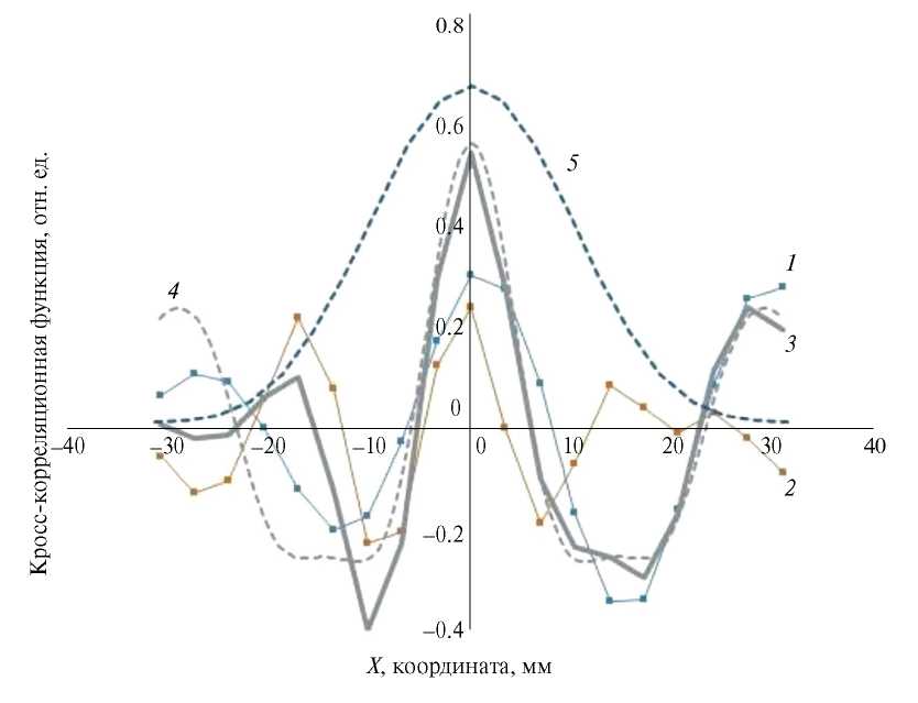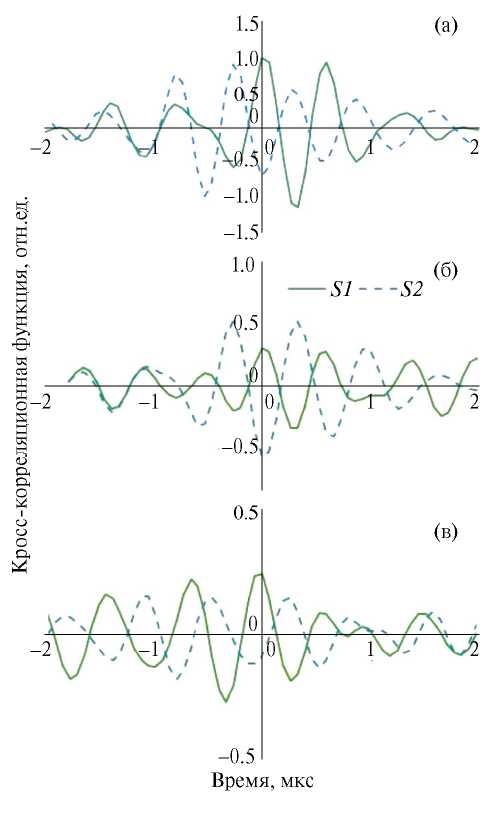 Измеренные кросс-корреляционные функции представлены на рис. 2 с учетом сдвига вдоль акустической оси.