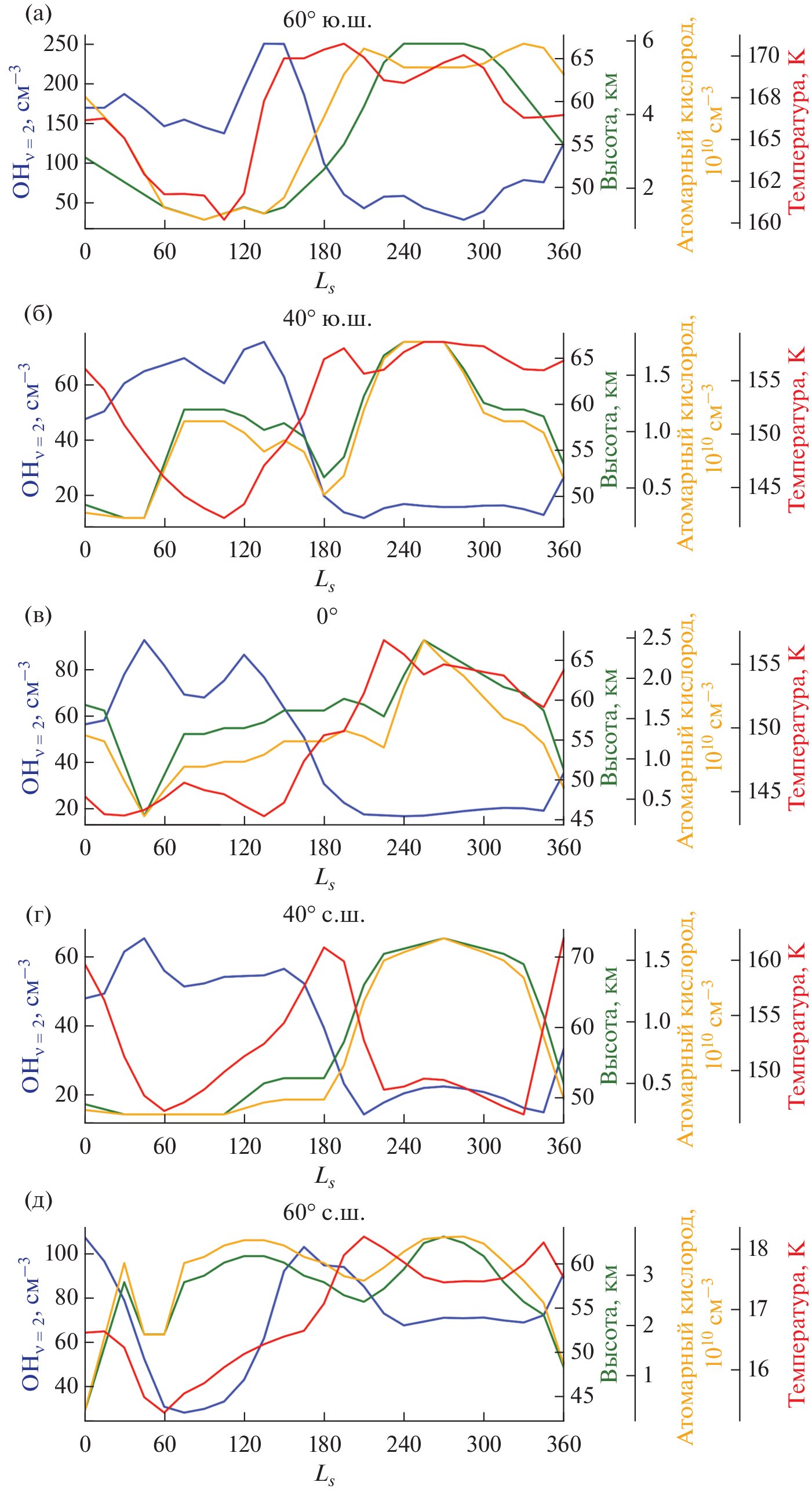 - Russell J.P., Ward W.E., Lowe R.P., Roble R.G., Shepherd G.G., Solheim B. Atomic oxygen profiles (80 to 115 km) derived from Wind Imaging Interferometer/Upper Atmospheric Research Satellite measurements of the hydroxyl and greenline airglow: Local time–latitude dependence // J. Geophys. Res. 2005. V. 110. P. D15305. https://doi.org/10.1029/2004JD005570