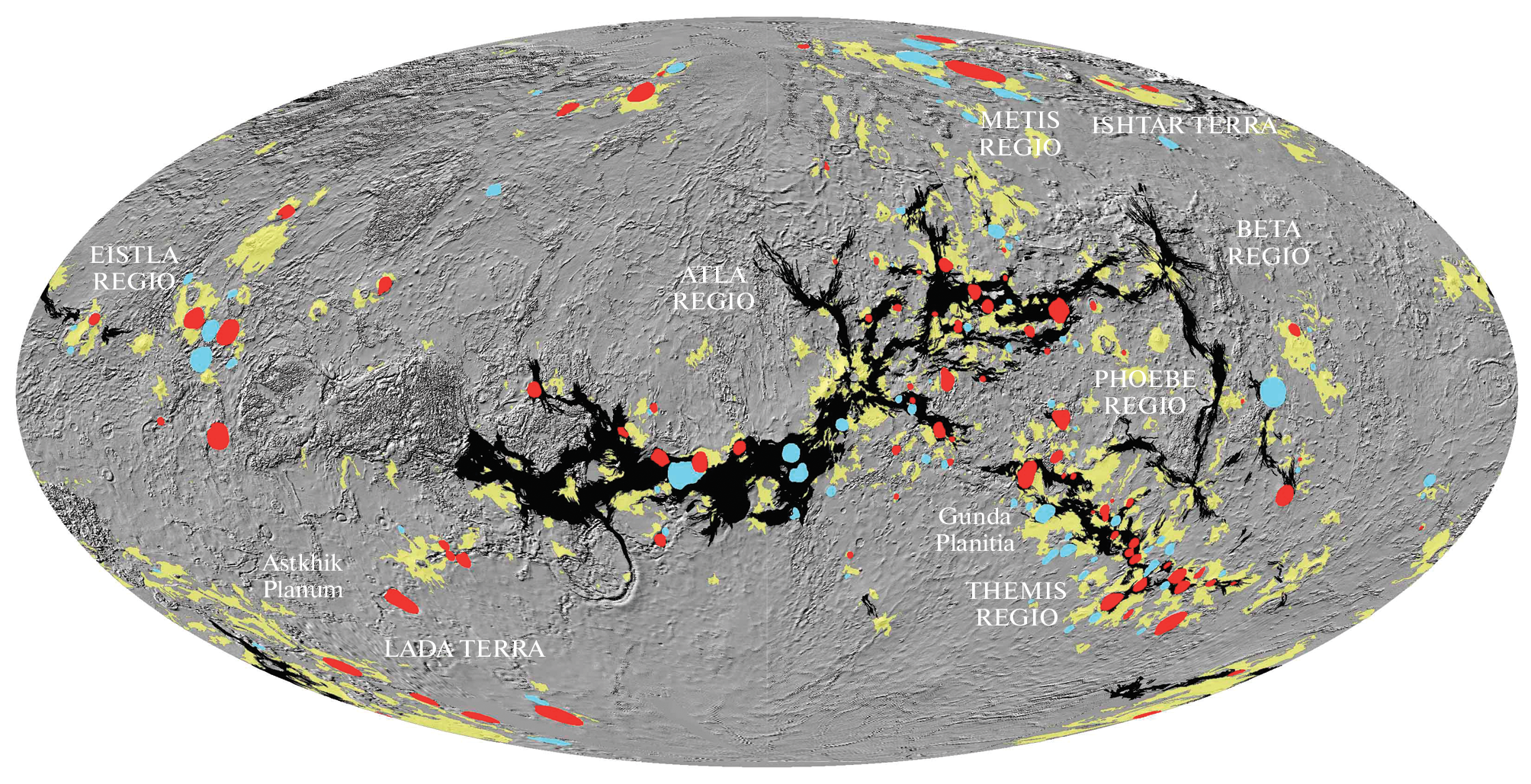 - Airey M.W., Mather T.A., Pyle D.M., Ghail R.C. The distribution of volcanism in the Beta-Atla-Themis region of Venus: Its relationships to rifting and implications for global tectonic regimes // J. Geophys. Res. 2017. V. 122. P. 1626–1649.