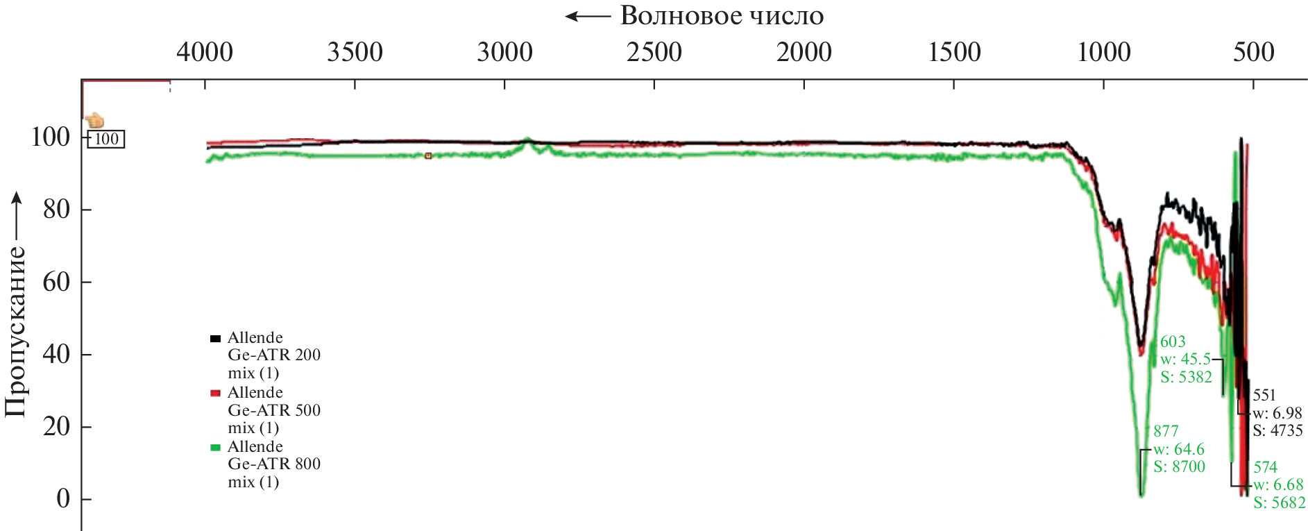 Изучена дегазация вещества углистого хондрита Allende (тип СV3) на специально сконструированной для этих задач установке. Представлены результаты экспериментальных исследований по ступенчатому нагреву (без накопления газов) и изотермическому отжигу образцов метеорита с определением состава выделяемых газов методами газовой хроматографии в интервале температур от 200 до 800°C. Для учета сорбированной воды дополнительно изучена дегазация при 50 и 110°C. Получены КР- и ИК-спектры как первичного вещества Allende, так и вещества после его отжига при трех температурах: 200, 500 и 800°C. На их основе прослежен ход теплового преобразования вещества родительского тела метеорита и получена оценка максимальной температуры метаморфизма. Проведено сравнение с результатами дегазации углистого хондрита другого типа – Murchison (тип CM2).
