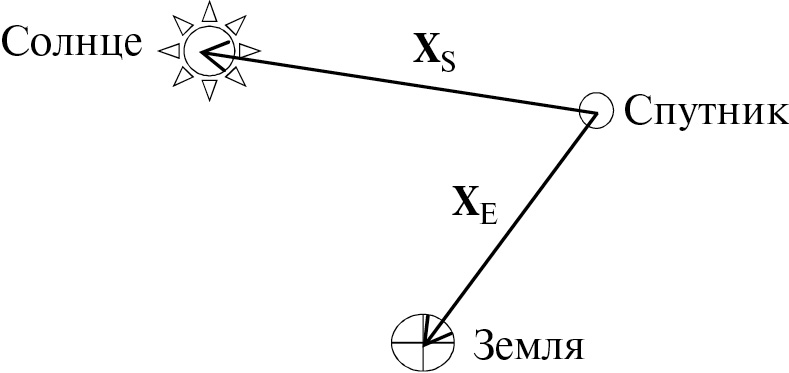 где и есть векторы положения наблюдателя и Солнца в системе координат, связанной со спутником (см. рис. 1).