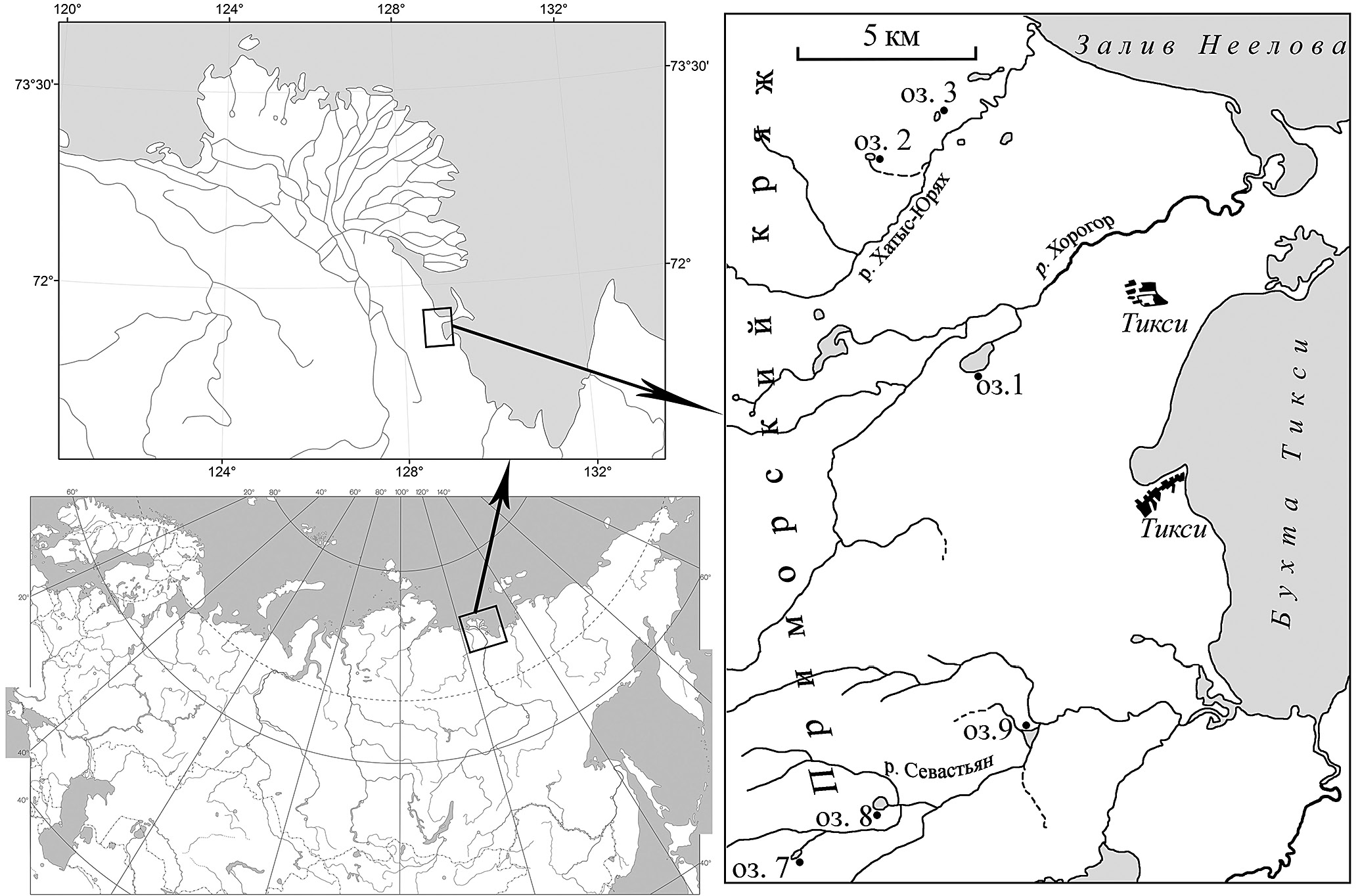 Объектами настоящего исследования послужили шесть тундровых озер, расположенных вблизи охранной зоны Усть-Ленского заповедника (Якутия) (рис. 1, табл. 1, 2).