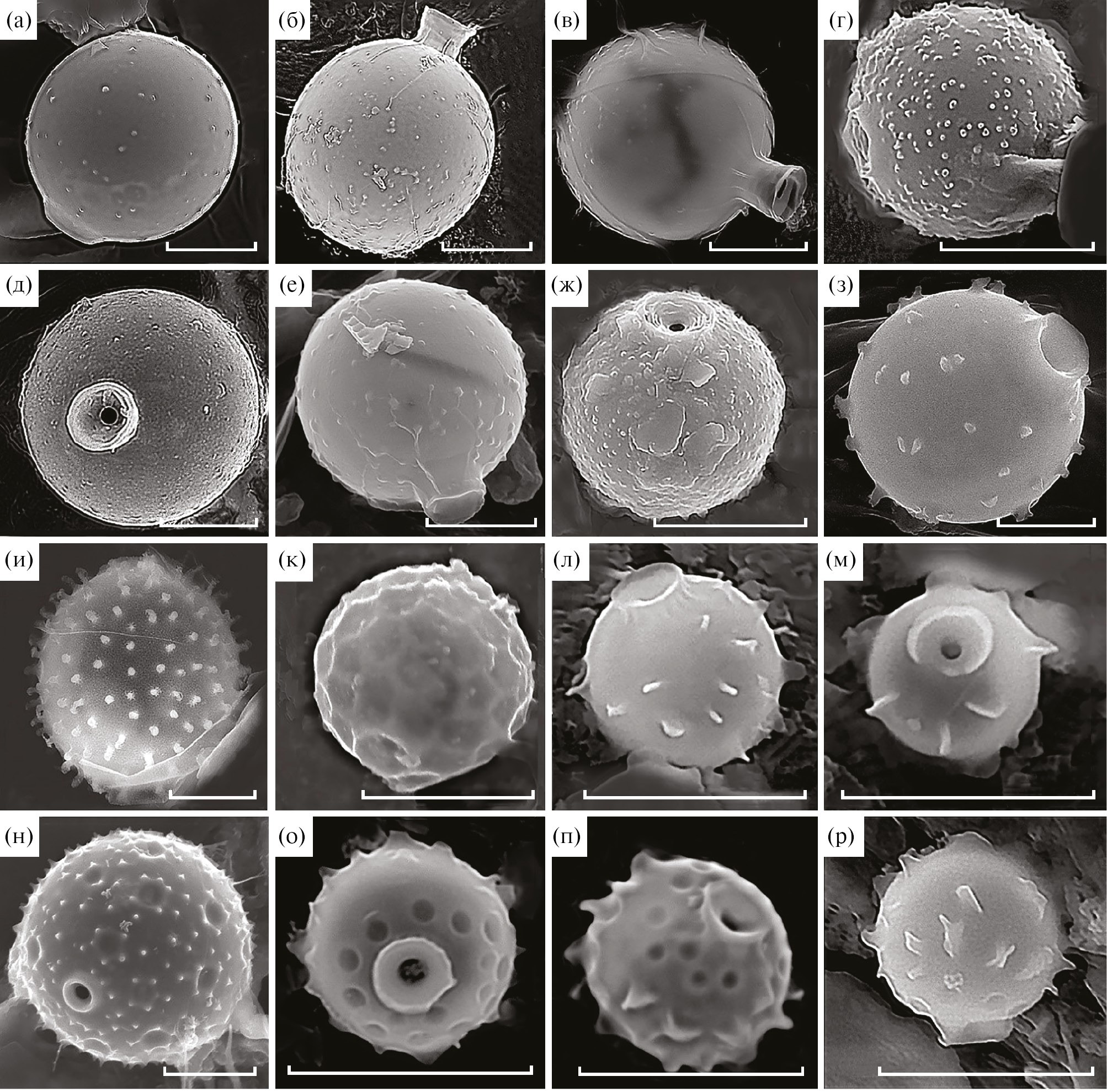Примечание. Зарегистрирован образец с диаметром 14.5 мкм и высотой воротничка 4.8 мкм, базальный диаметр воротничка 4.1 мкм, соотношение диаметров цисты и воротничка остается соответствующим описанию; обнаружен в подледный период (рис. 2п).