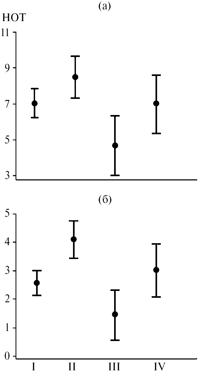 Примечание. Здесь и в табл. 2–4, I – серый ил, II – заиленный песок, III – торфянистый ил, IV – заиленный ракушечник.