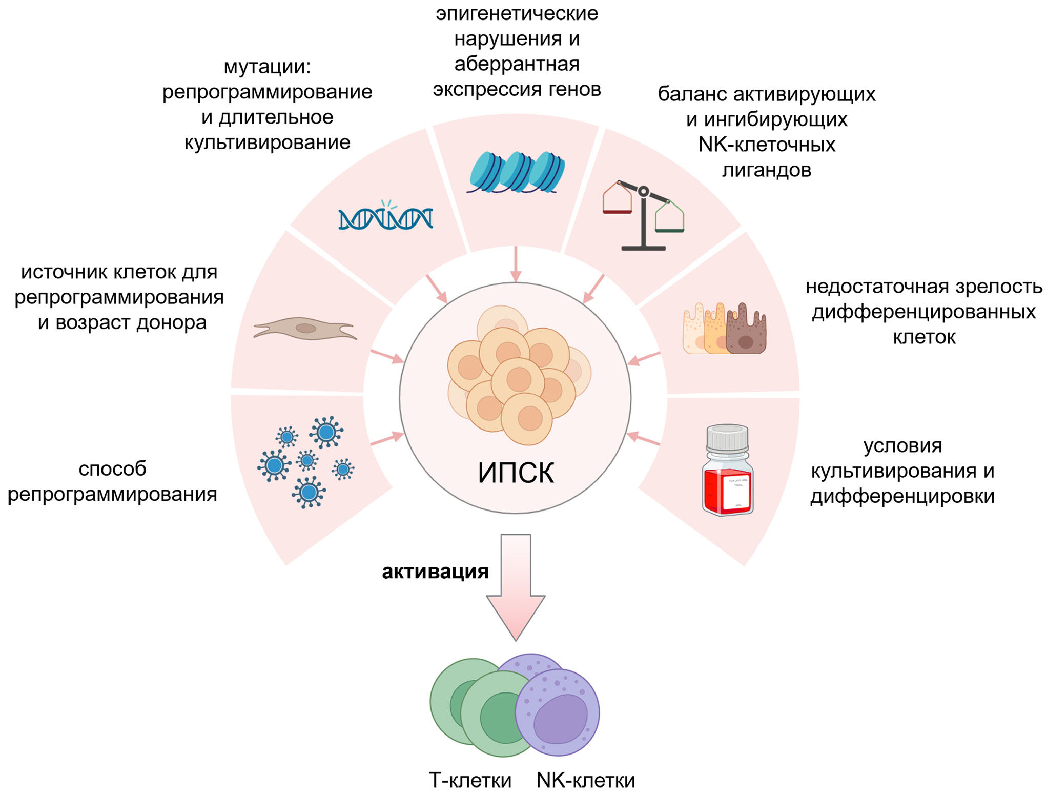 Рис. 3. Потенциальные причины нарушения толерантности иммунной системы в отношении аутологичных ИПСК и их дифференцированных производных