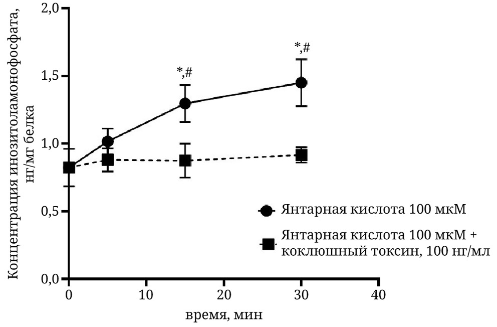 Дополнительно в рамках исследования было оценено влияние коклюшного токсина на концентрацию инозитолмонофосфата в клетках С2С12 при стимуляции миогенной дифференцировки янтарной кислотой, поскольку показано, что активациях SUCNR1 сопровождается повышением его концентрации [11].