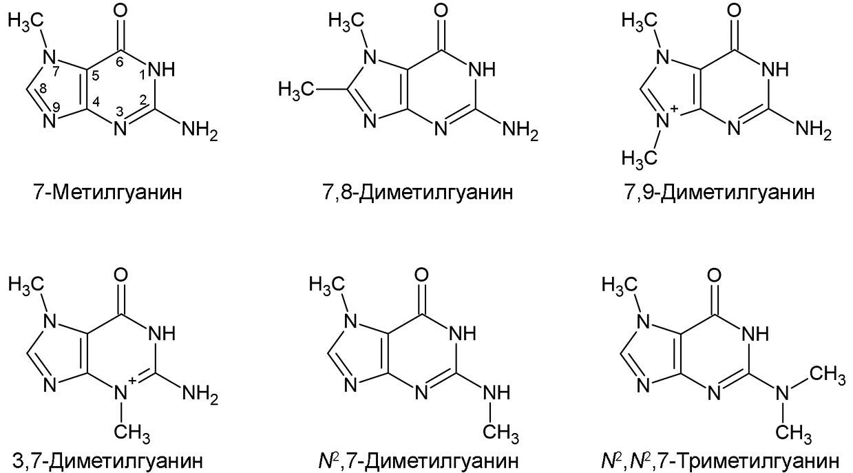 Рис. 4. Химические структуры 7-метилгуанина и его производных