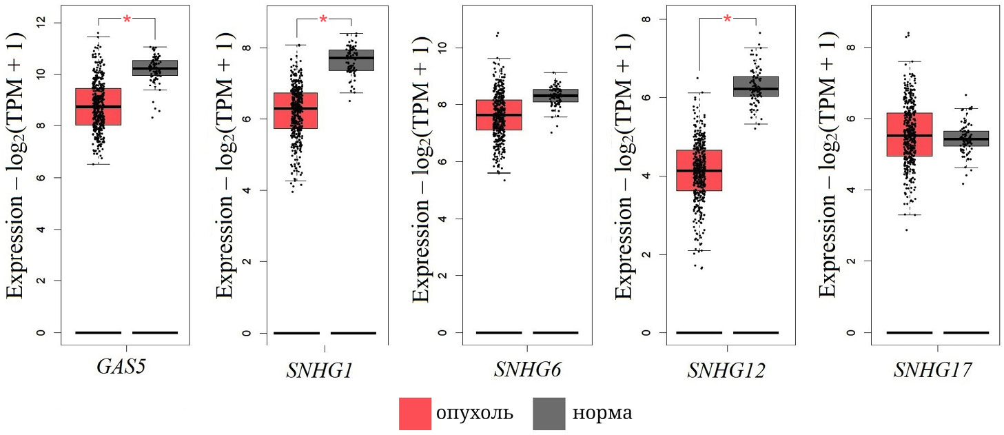 Таким образом, полученные нами данные важны для определения путей регуляции и функций этой группы днРНК семейства SNHG в патогенезе опухолей. Наши результаты о связи днРНК GAS5, SNHG1, SNHG6 и SNHG12 c биогенезом рибосомы при РЯ согласуются с данными литературы, полученными в опухолях других локализаций, что отражает новизну нашего исследования и приоритетность результатов.