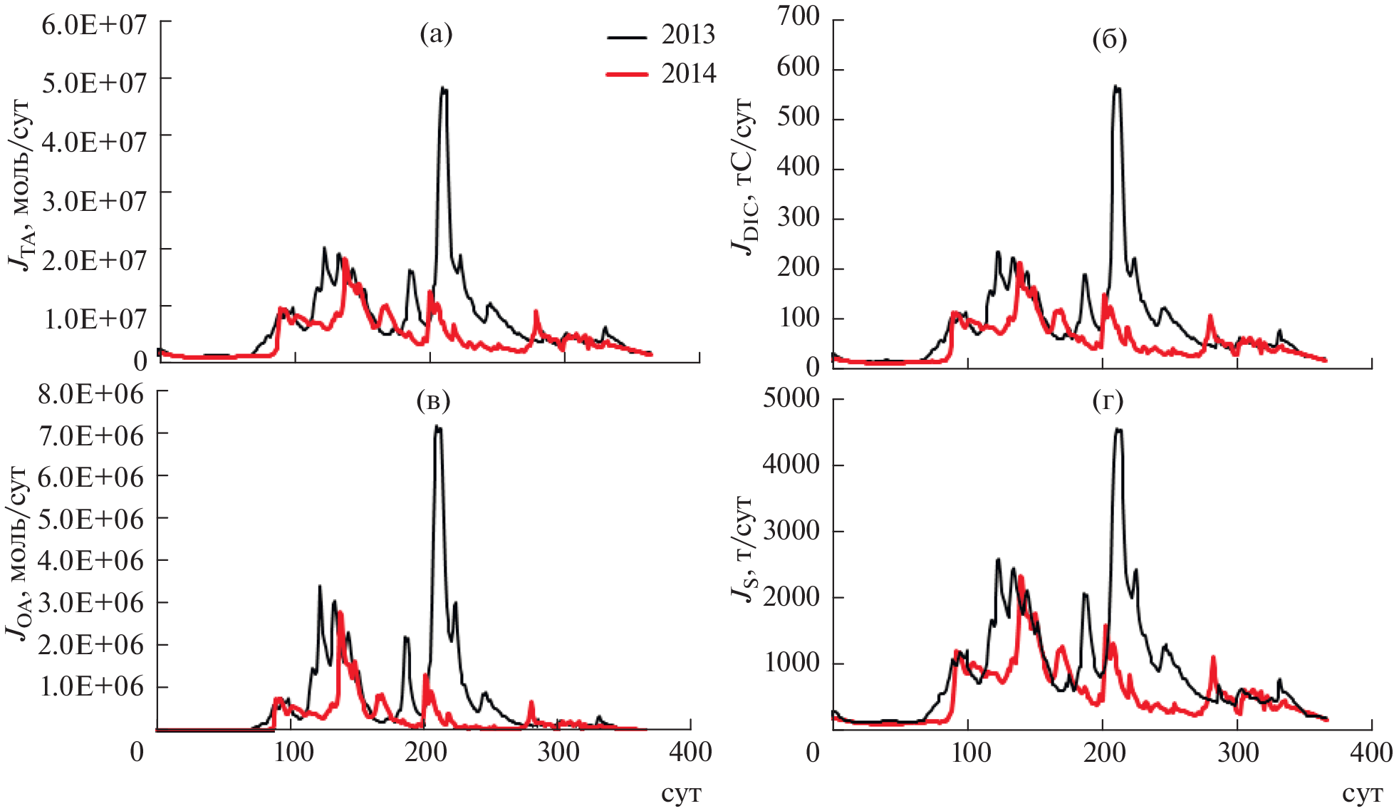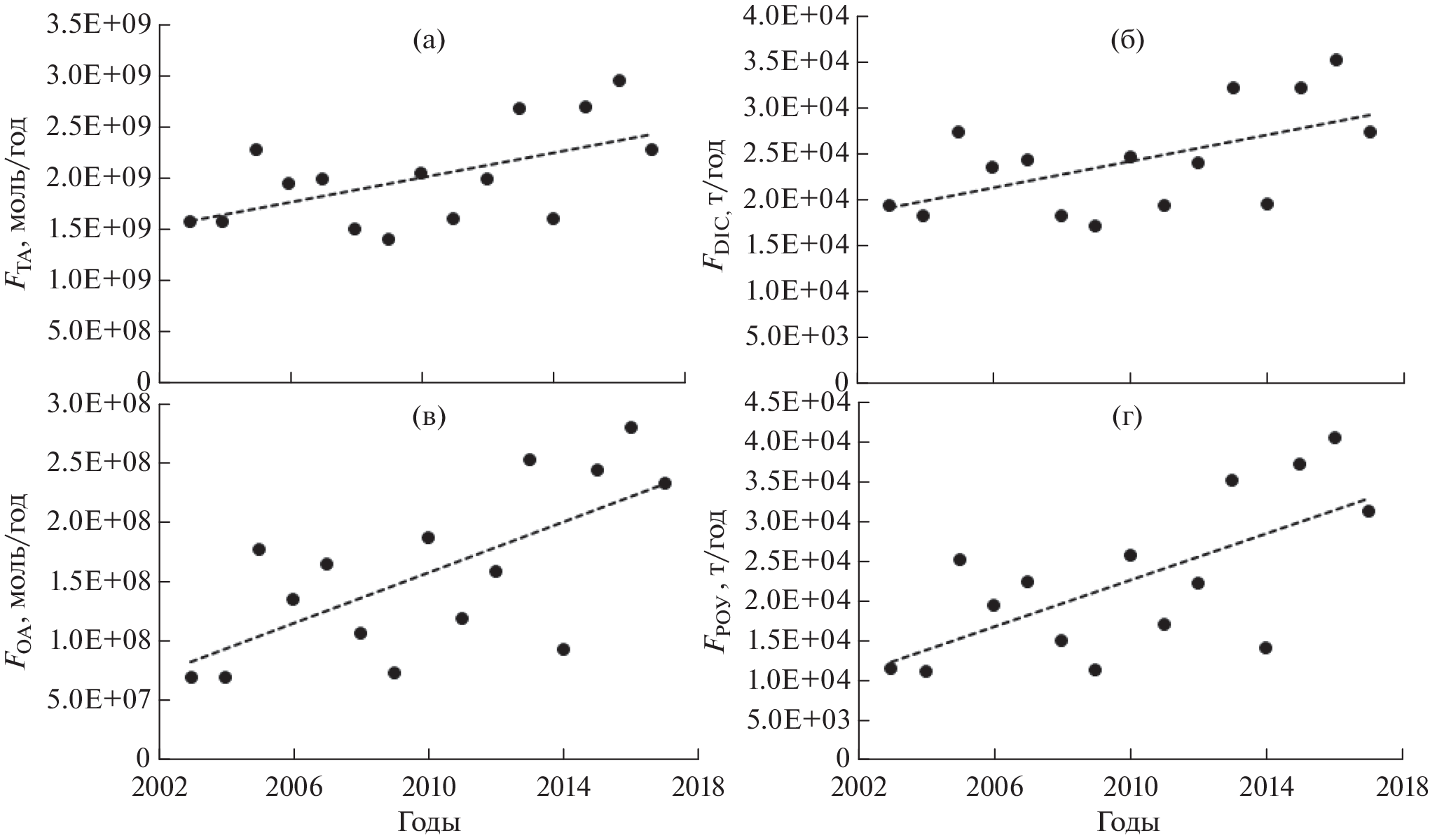 - Cai W.-J., Wang Y. The chemistry, flux, and sources of carbon dioxide in the estuarine waters of the Satilla and Altamaha Rivers, Georgia // Limnol. Oceanogr. 1998. V. 43. № 4. P. 657–668.