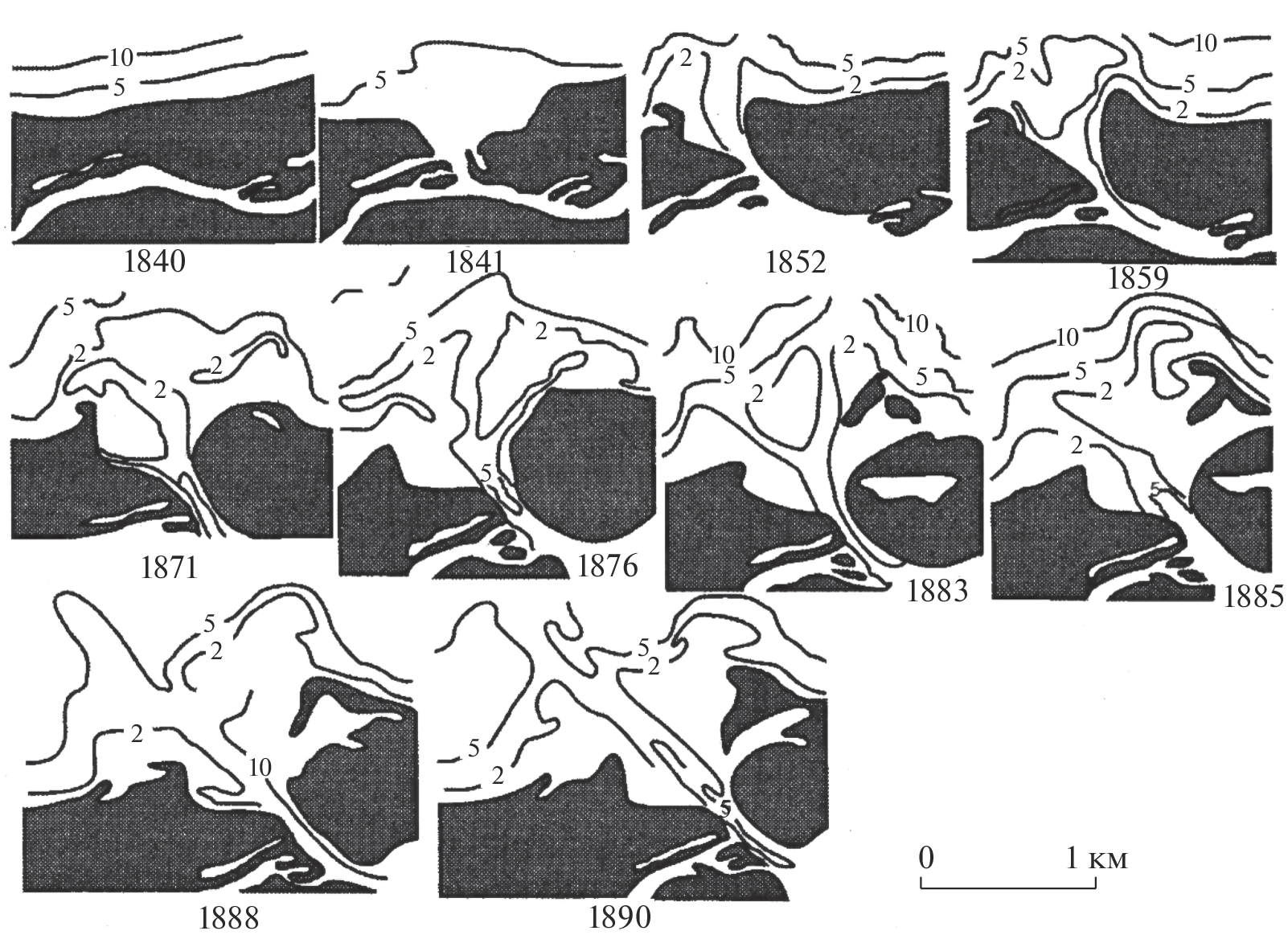 - Михайлова М.В. Динамика устьевых баров и методы расчета их морфометрических характеристик // Вод. ресурсы. 1999. Т. 26. № 4. С. 427–437.