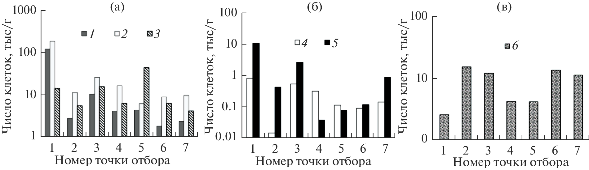 Data of chemical and microbiological analyses of bottom sediment composition of the Tom R. near Yurga Town, Kemerov oblast, are given. All samples of bottom sediments were found to contain organic compounds of mixed, biogenic, and anthropogenic origin with the predominance of the latter. Clayey and silty bottom sediments show a higher content of ash-free substance, heavy metals, practically all classes of identified hydrocarbons, except for oxygen-containing and acyclic compounds. Bottom sediments with sand composition contain minimal concentrations of organic pollutants, and the proportions of hydrocarbons of different origin in them are comparable. Microbiological analysis showed the predominance of hydrocarbon-oxidizing bacteria in bottom sediments composed of clays and silty sand.