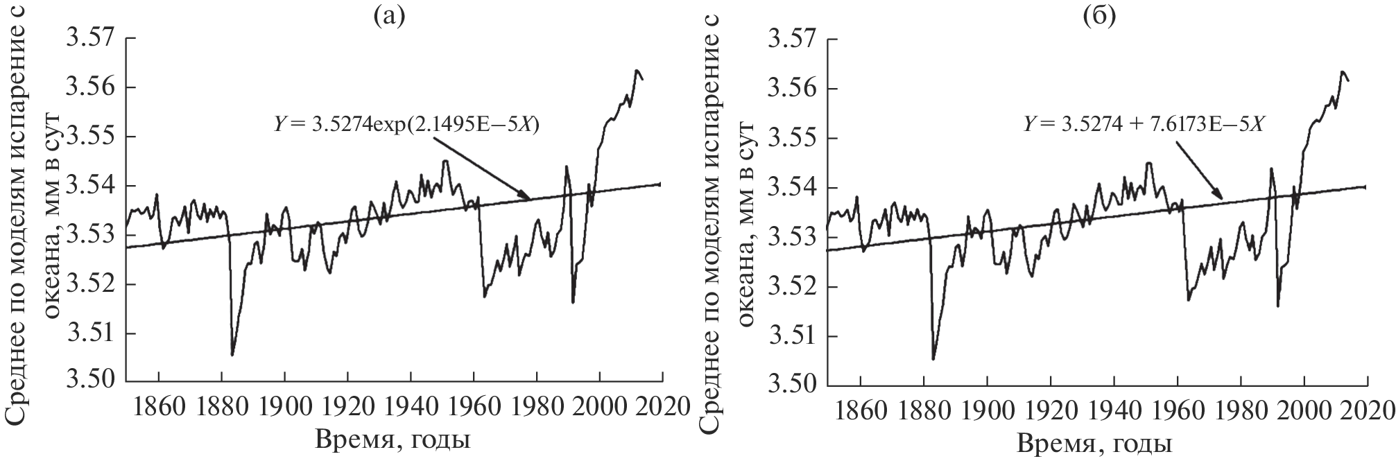 Long-term (up to 165 years) series of globally averaged values of the main water exchange components, obtained as the result of historic experiments on several dozen (from 34 to 41) climate models of CMIP-6 project, are analyzed. The examined characteristics include variations of evaporation from ocean surface, precipitation over the ocean, effective evaporation from the ocean (total horizontal moisture transfer in the atmosphere from the ocean to land), and total model river runoff from the continents. It is shown that the model precipitation over the ocean effectively filters out the monotonic positive trend in evaporation from the ocean and, therefore, increases the stationarity of the total chain of global water exchange, including long-term changes in the global river runoff.