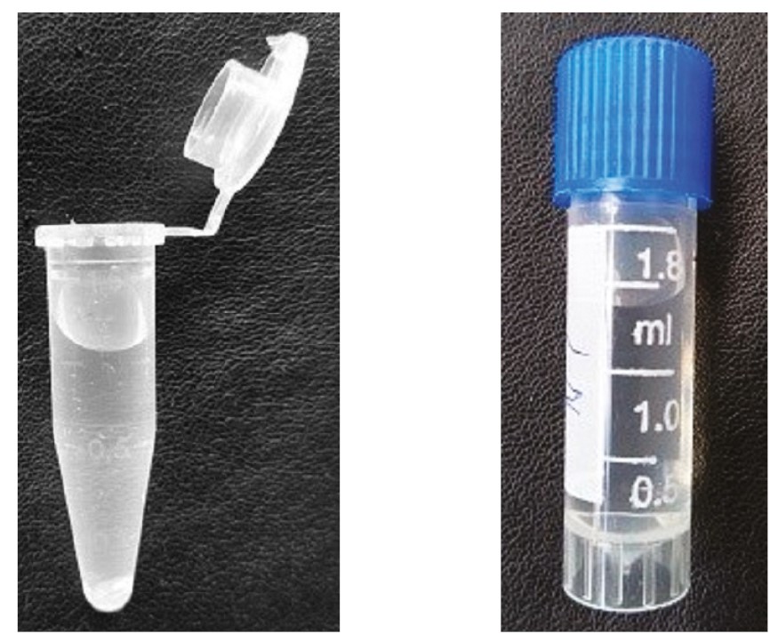 Пробы природной воды отбирали в одноразовые пробирки Эппендорфа емкостью 1–2 мл с герметичной крышкой (рис. 1). Крышку пробирки с пробкой закрывали для исключения контакта с воздухом и испарения воды.