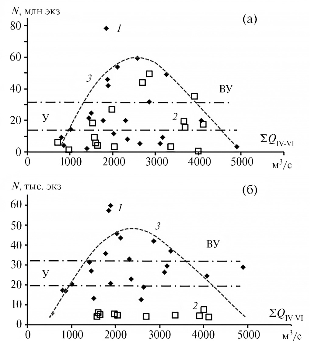 Весенний сток, оптимальный для ихтиофауны и почвенно-растительного покрова поймы | |||||||||||||
