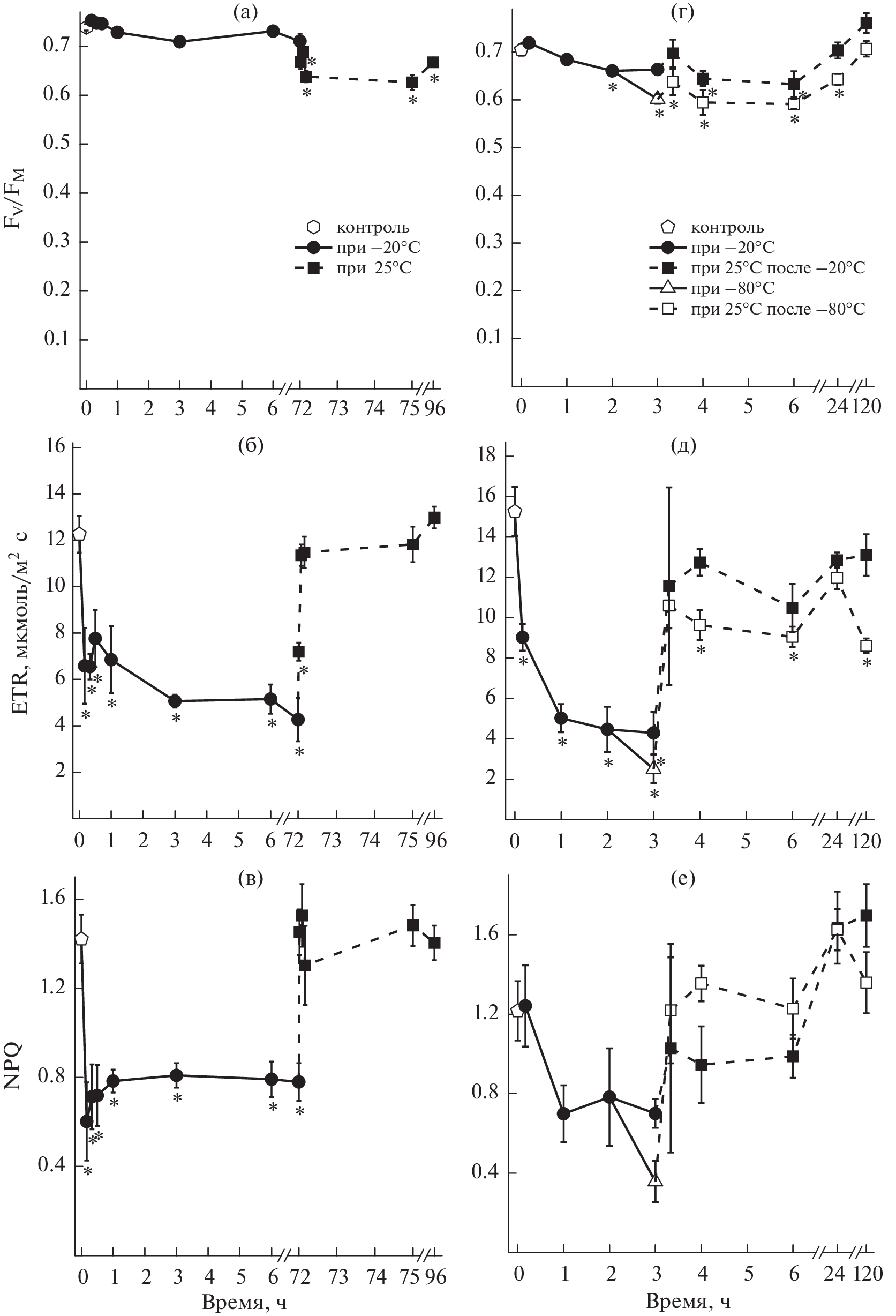 The influence of positive and negative temperatures, as well as dehydration/rehydration on the maximum photochemical efficiency, the rate of electron transfer in photosystem II and non-photochemical quenching of the moss Hylocomium splendens, widespread in the boreal forests of the Northern Hemisphere, is shown. It was found that this moss is resistant to low negative (–20 and –80°C) temperatures and significant water losses. On the contrary, in the hydrated state it is unstable to prolonged exposure to positive temperatures (40°C). High resistance to low temperatures and dehydration allowed H. splendens to successfully adapt to growing in northern latitudes and occupy a wide range.