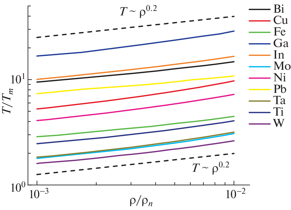 Впервые изучено поведение линии единичного фактора сжимаемости в области низкотемпературной плотной плазмы металлов. Ее форма является универсальной на плоскости плотность–температура для многих однокомпонентных газов и жидкостей при низких температурах, а также для жидких металлов. С помощью вириальных разложений и расчетов в рамках химической модели показано, что это подобие нарушается при переходе в область низкотемпературной плазмы металлов. Тем не менее, в этой области при сравнительно низких плотностях для этой линии возможно более слабое подобие, выражаемое степенным законом.