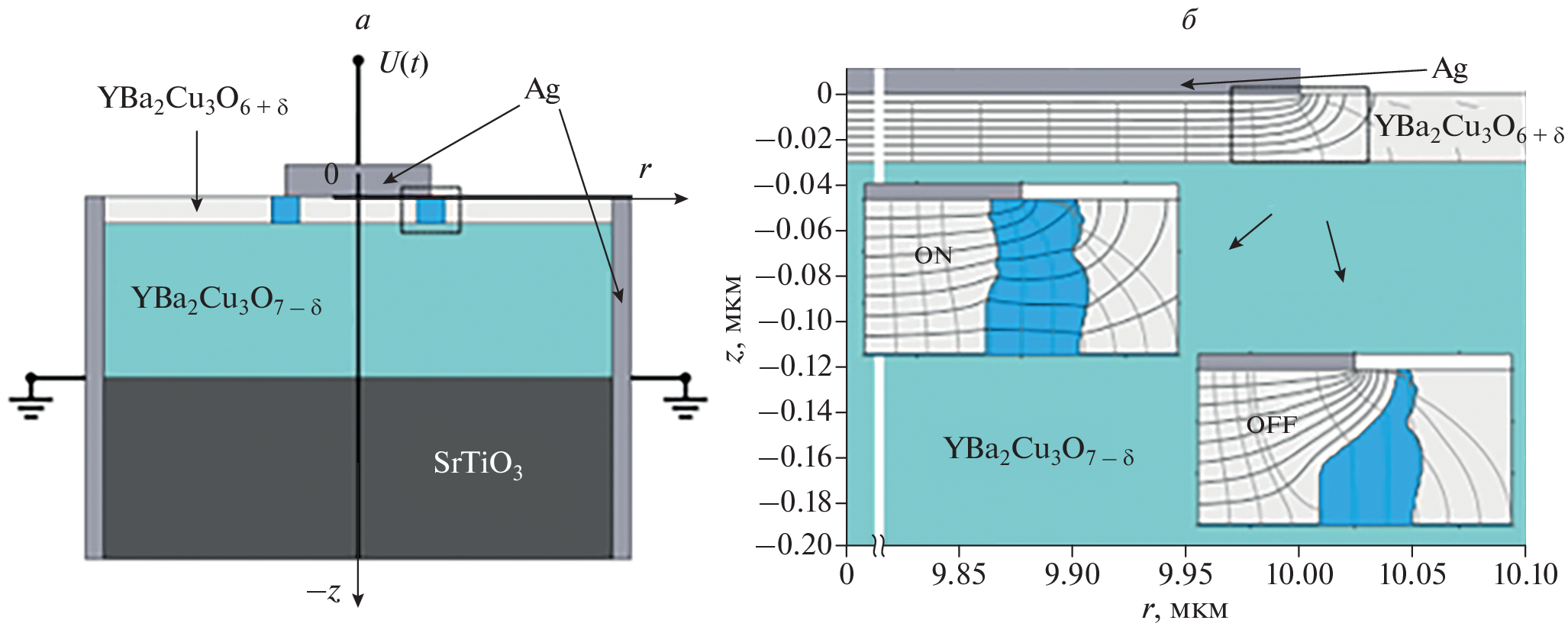 The choice of base materials and the use of their functional properties in the development of the structure and elucidation of the mechanism of resistive switching has been analyzed. Mesoscopic heterostructures based on epitaxial oriented 〈001〉 films of high-temperature superconductor YBa2Cu3O7 – δ and doped manganite La1 – xSrxMnO3 – δ, were obtained, and the properties of percolation channels of structures based on these compounds were studied. The effects of “self-adapting electroforming” in microcontact heterostructures based on epitaxial films of manganite are observed. Numerical calculations using the critical electric field model have shown that “self-electroforming” occurs in strong electric fields and a gap structure is formed in the contact zone. This structure provides reproducibility of resistive switching.