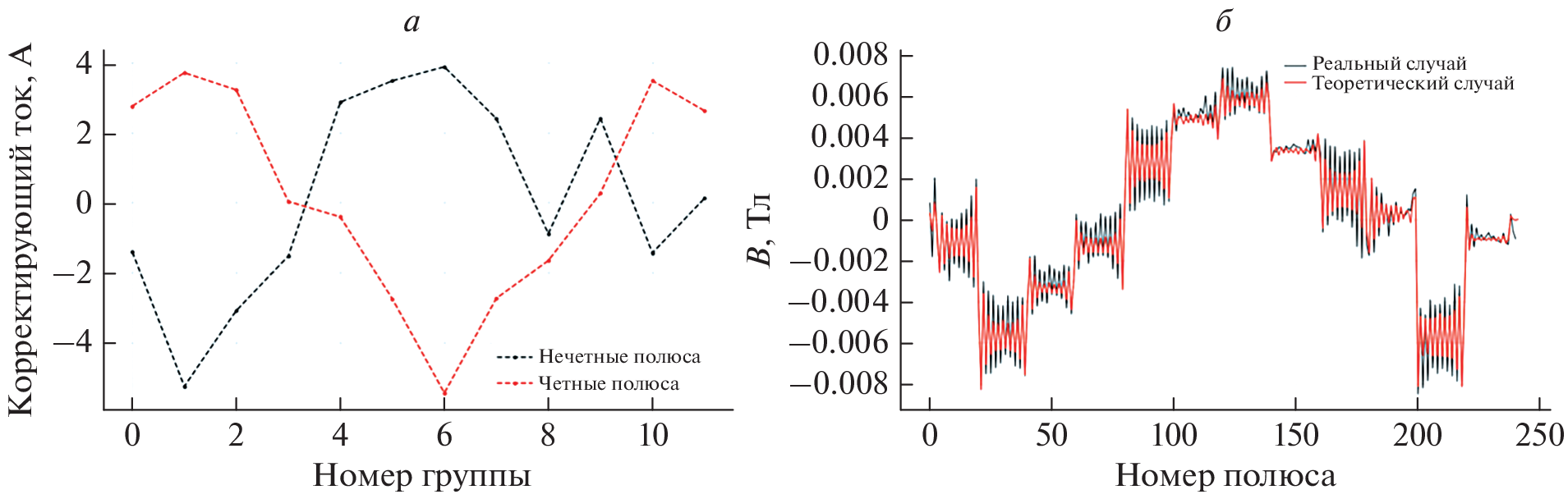 We described a method of magnetic field correction for a superconducting undulator with neutral poles manufactured in the INP, as well as a mathematical apparatus predicting additional power currents for magnetic field correction. When correcting the field and orbit inside the undulator, the main windings of the undulator are used, grouped into separate groups and powered by additional currents. The test of this correction scheme was carried out, as well as a comparison of theoretical and experimental data of the measured magnetic field and calculated phase errors. In the SPECTRA program, the SI spectra were calculated before and after correction.