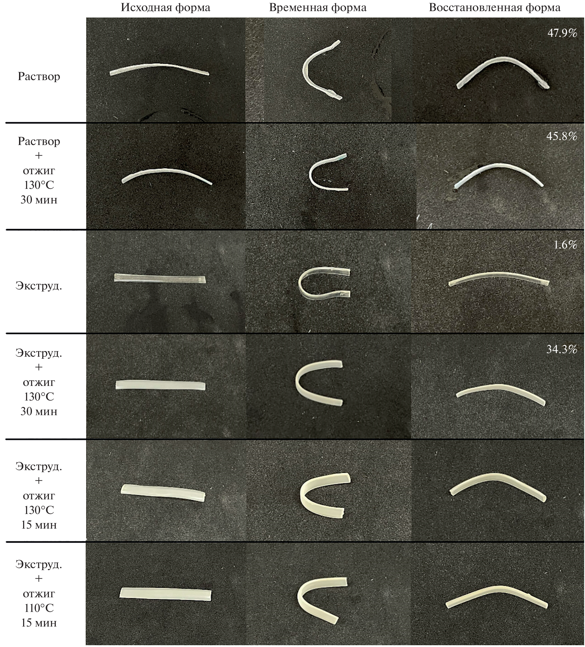 The influence of different methods of polylactide processing on its structural parameters were studied. The thermal properties and crystallinity of the material and the relationship between these properties and its supramolecular structure were studied, as well as the impact of these parameters on the realization of the shape memory effect of polylactide.