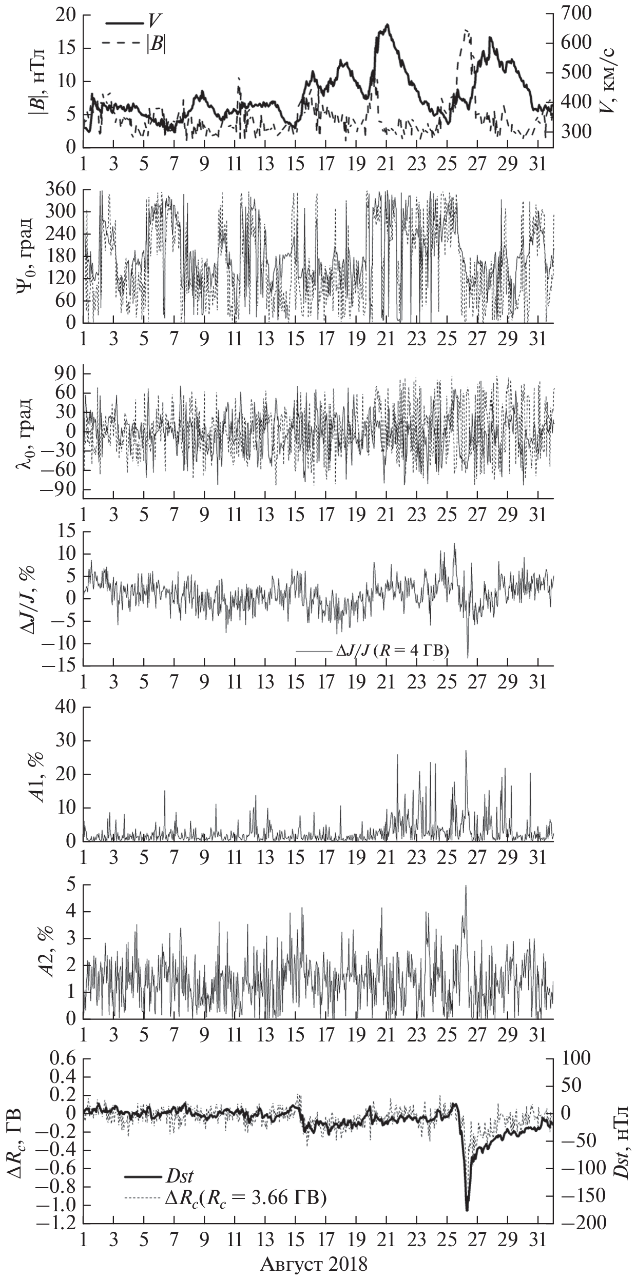 Monitoring of heliosphere, magnetosphere and atmosphere via cosmic ray effects in August 2018