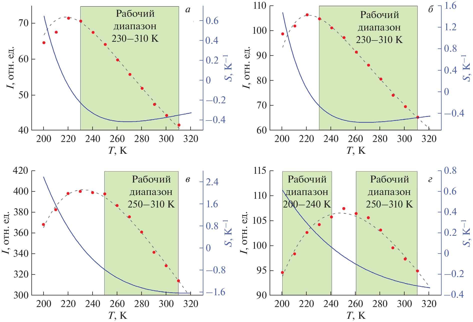 The results of temperature testing of the two-phosphor composite ([Ru(dipy)3]2+@SiO2 and NaYF4:Eu,Gd) are presented in order to assess the prospects for its further application as a luminescent thermal sensor in the range of 200–310 K. By calibrating the temperature dependences of individual spectral components of the emission produced under irradiation by cw laser at 405 nm, the possibilities of temperature sensing by means of ratiometric method are analyzed in four different spectral ranges of the composite’s visible luminescence.