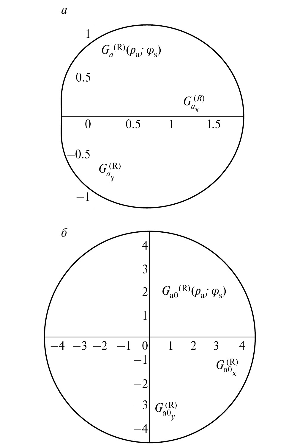 то φs0 есть нули этого же G(R)(p, φs) по углу рассеяния φs при фиксированном значении параметра p вследствие зависимости коррелятора (9) только от модуля переданного при рассеянии волнового вектора. Условие (32) является достаточным, но не необходимым, потому что есть еще структура неоднородности вдоль оси x3, обусловливающая фактор (31) в (9), рассмотренная в работе [17]. На рис. 3а и 3б представлен коррелятор (3) – (6), (12) – (24) и определяемая им сильная угловая анизотропия и нули углового распределения рассеяния (9). Это физическое явление есть нарушение как рэлеевской изотропии рассеяния [5], так и анизотропии рэлеевского рассеяния, обусловленной структурой (31). Она полностью определяется новыми законами (25), (26) рассеяния волны Рэлея в рэлеевском пределе, и, как их следствием, нарушением частотного закона рэлеевского рассеяния, когда NR = 0 в (25), (26). Данная анизотропия (32) нарушает топологическую симметрию законов (25), (26) и при NR > 0. Для этой симметрии, как следует из (12), (25), (26), характерно только одно запрещенное направление рассеяния вперед φs = 0 (12) и подавленное рассеяние в его окрестности, которая тем шире, чем больше NR (25).