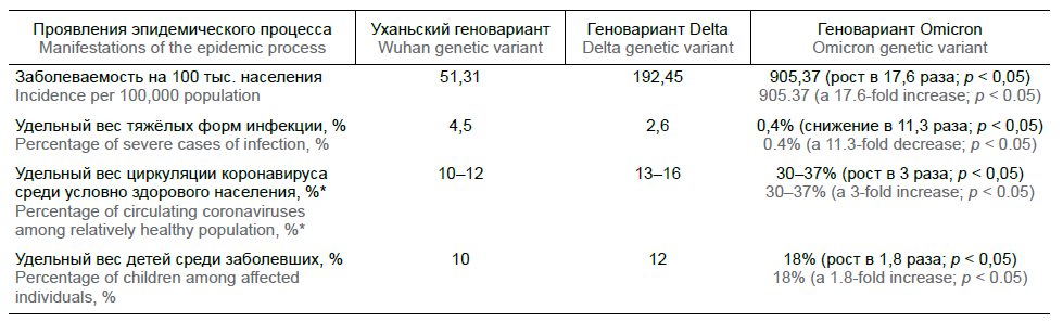 Manifestations of the epidemic process | Wuhan genetic variant | Delta genetic variant | Omicron genetic variant |