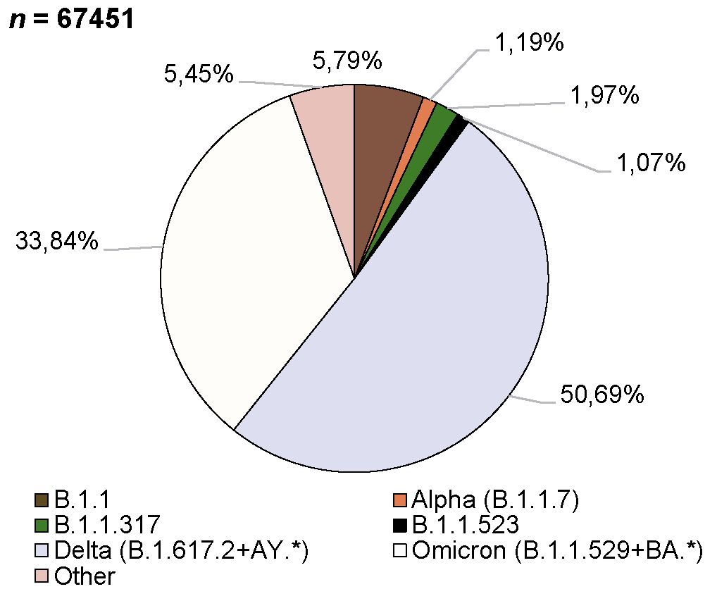 B.1.1 | B.1.1.317 | B.1.1.523 | Alpha (B.1.1.7) | Delta (B.1.617.2+AY.*) | Omicron (B.1.1.529+BA.*) | other | ||