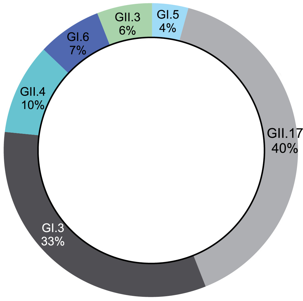 Fig. 2. Distribution of different norovirus genogroups detected in the Sverdlovsk region in 2022.