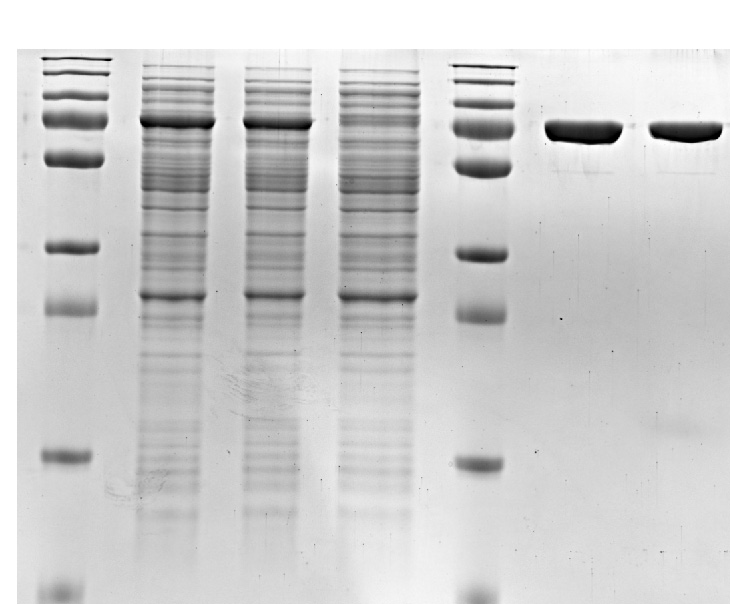 The protein concentration was measured using QubitTM (Thermo Scientific); the purity of a protein was estimated using denaturating SDS-PAGE electrophoresis [19].