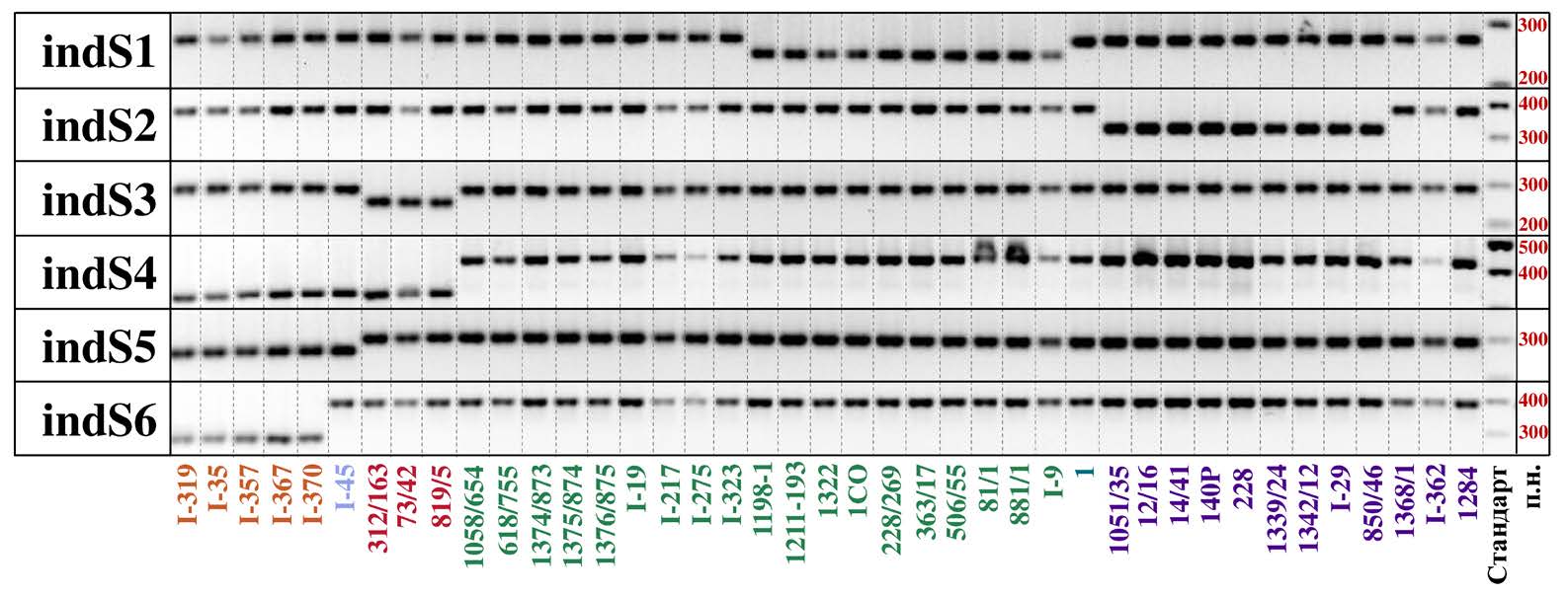 Fig. 2. Results of PCR reaction of INDEL loci with detection by electrophoresis.