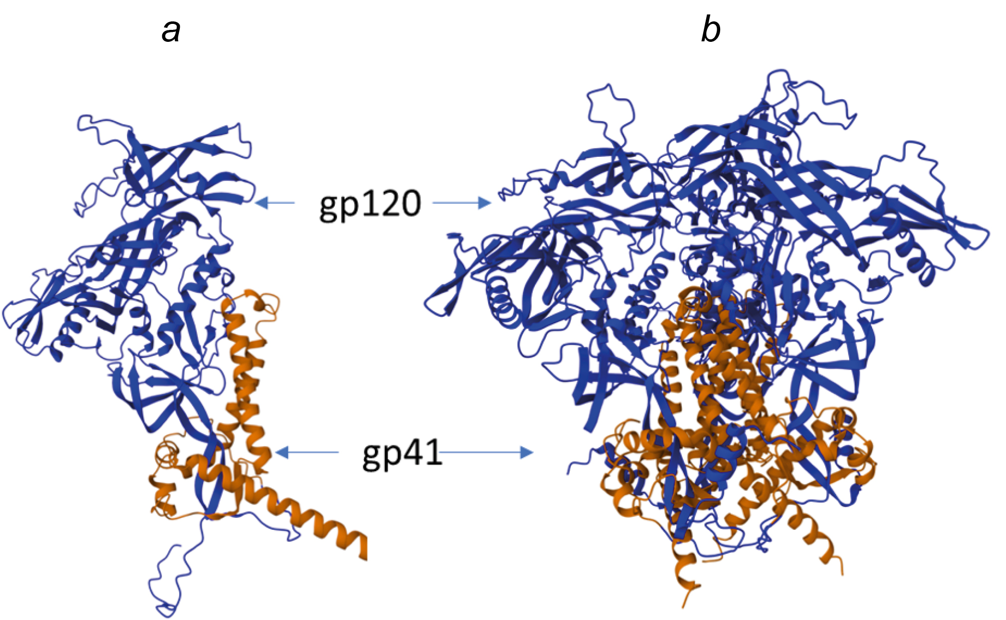 3. Fig. 2. Structure model of the monomer (а) and trimer (b) of gp140.SOSIP.664.opt.