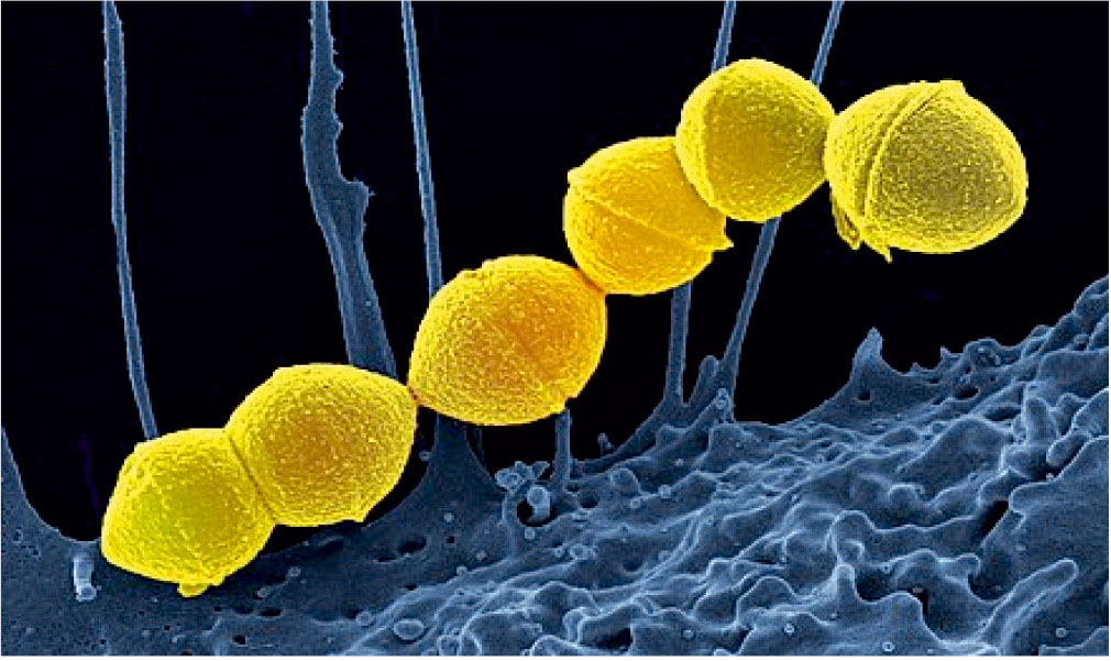 Рис. 1. Электронная микрофотография S. pyogenes. Источник: Streptococcus pyogenes. URL: https://en.wikipedia.org/wiki/Streptococcus_pyogenes