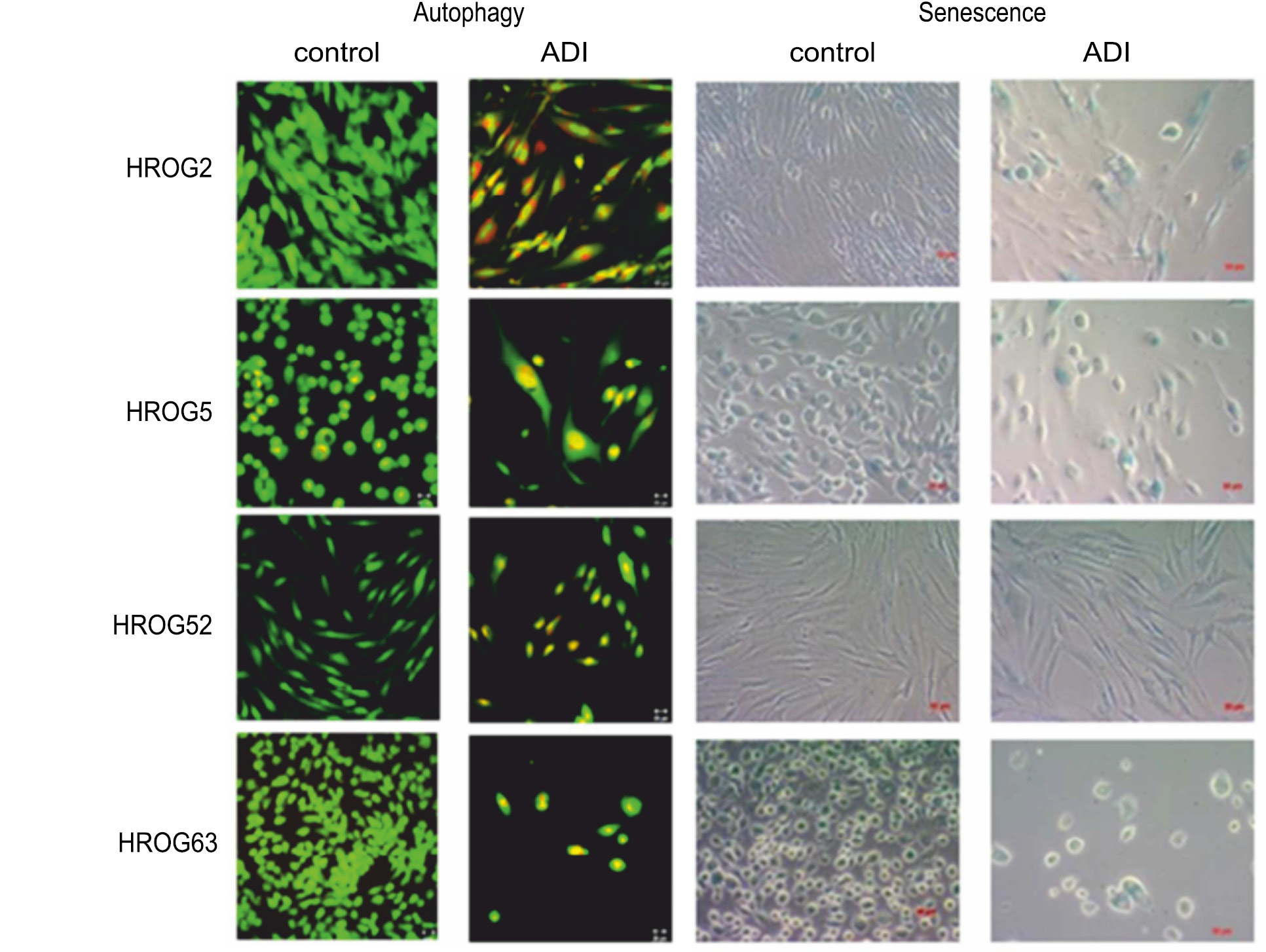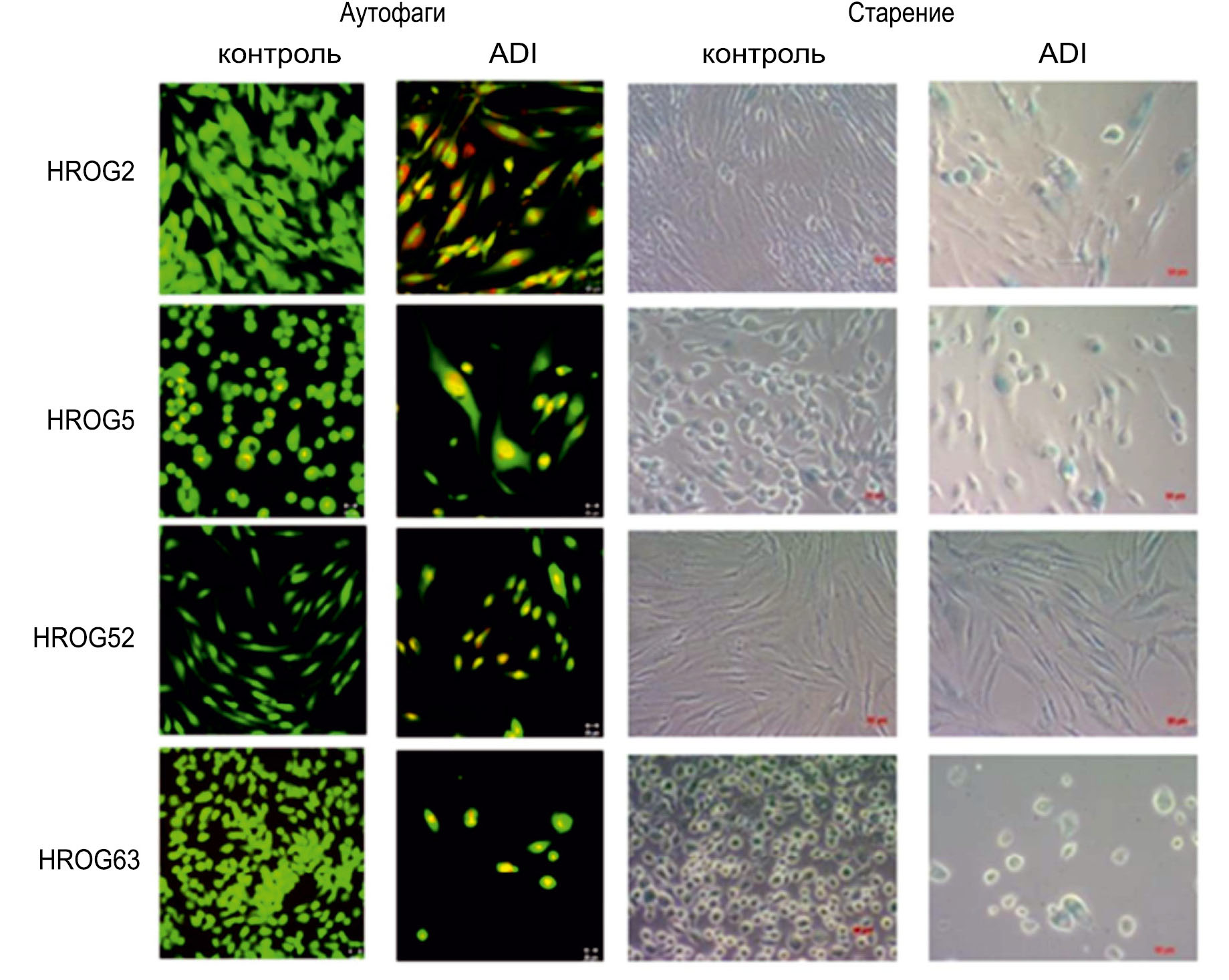 Рис. 10. Воздействие ADI индуцирует аутофагию и старение в клетках ГБМ [34].