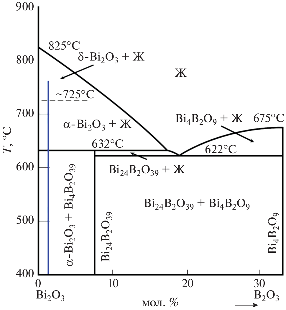 - Levin, E.M. and McDaniel, C.L., The System Bi2O3–B2O3, J. Amer. Ceram. Soc., 1962, vol. 45, no. 8, p. 355.