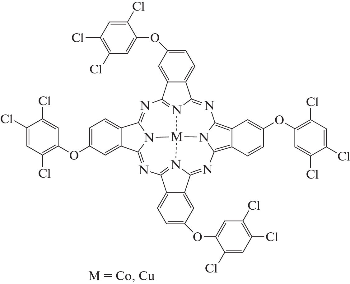 - Erzunov, D., Tikhomirova, T., Filippov, D., Maizlish, V., Abramov, I., and Vashurin, A., Tetrasubstituted (4‑chlorophenoxy)- and (2,4,5-trichlorophenoxy)phthalocyanine metal(II) complexes and their sulphonated derivatives: synthesis and properties, Eur. Chem. Bull., 2019, vol. 8, no. 11, p. 376. https://doi.org/10.17628/ecb.2019.8.376-382