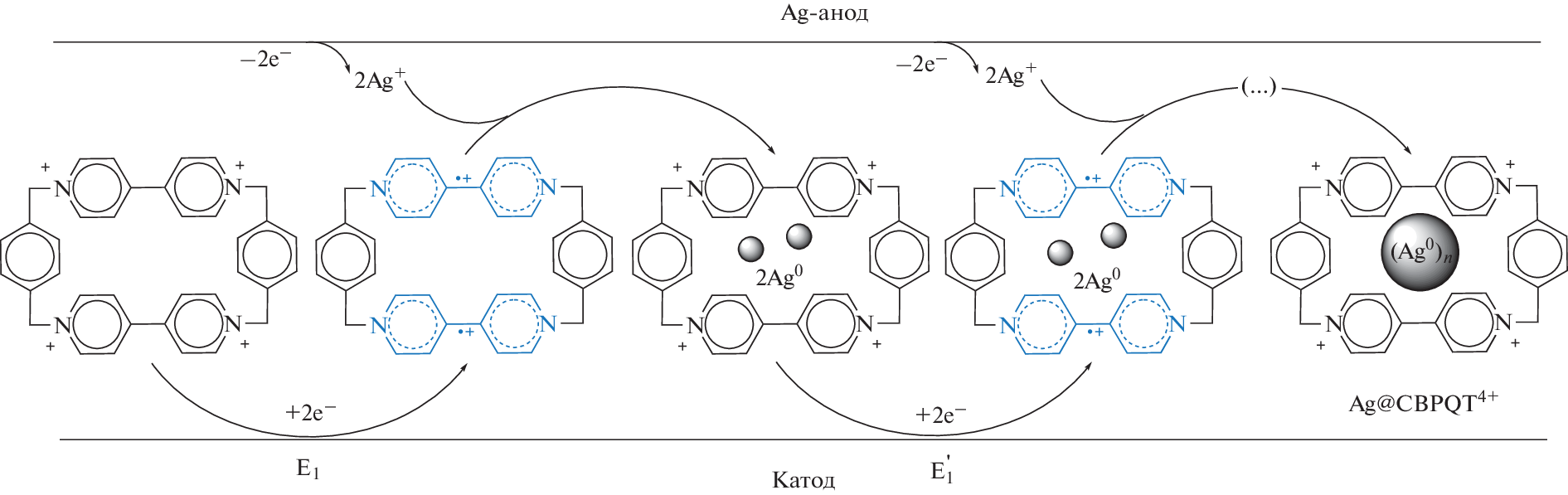 - Yanilkin, V.V., Nastapova, N.V., Nasretdinova, G.R., Fazleeva, R.R., Toropchina, A.V., and Osin, Yu.N., Methylviologen mediated electrochemical reduction of AgCl—A new route to produce a silica core/Ag shell nanocomposite material in solution, Electrochem. Commun., 2015, vol. 59, p. 60.