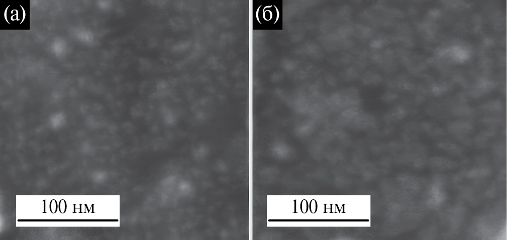 Рис. 2. Электронные микрофотографии, полученные методом СЭМ с увеличением ×250 наночастиц Pt(0), синтезированных методом ИН на поверхности никеля в результате 20 (а) и 40 (б) циклов обработки.