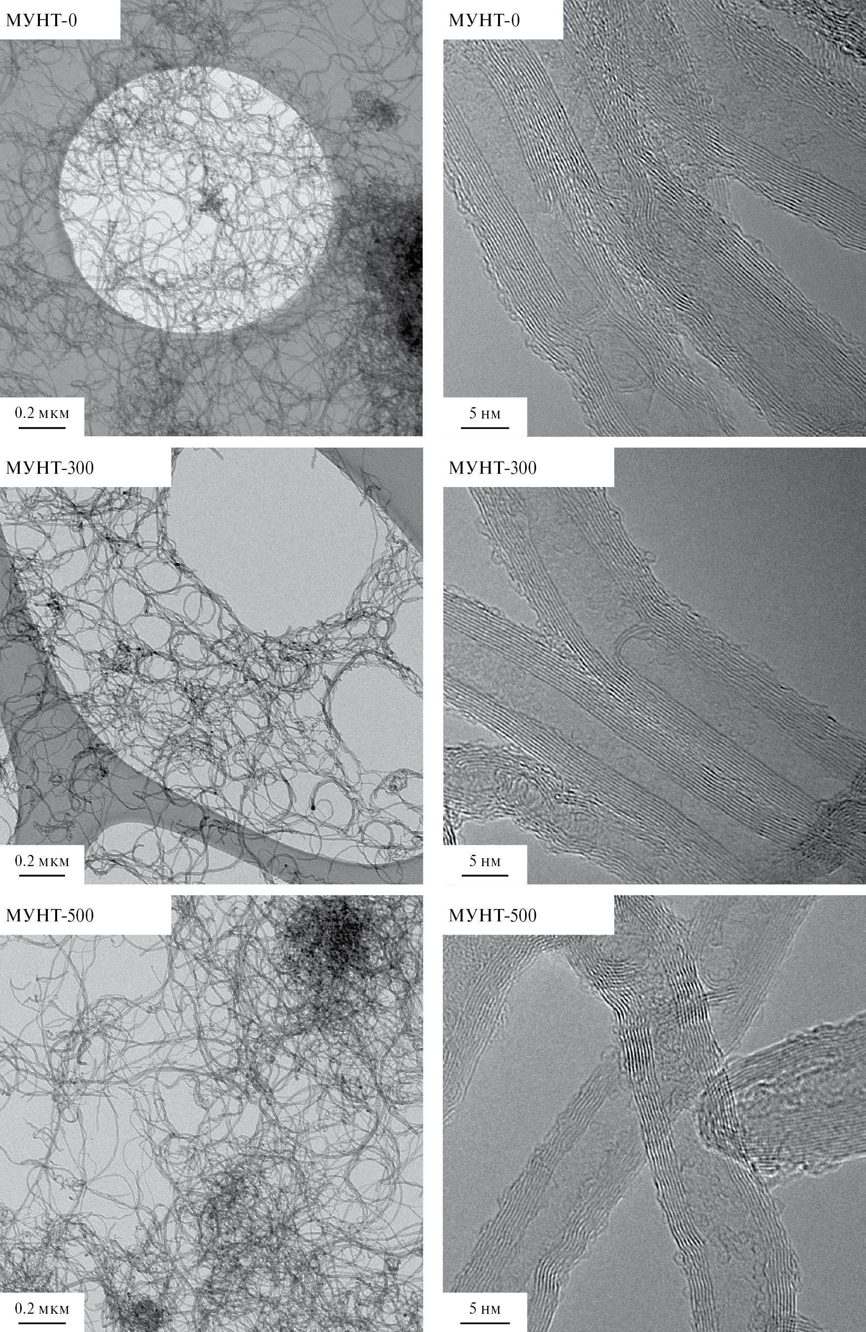 Образцы были названы “МУНТ-температура восстановления”, исходные МУНТ получили название “МУНТ-0”.