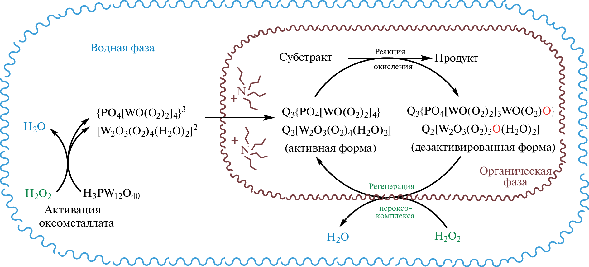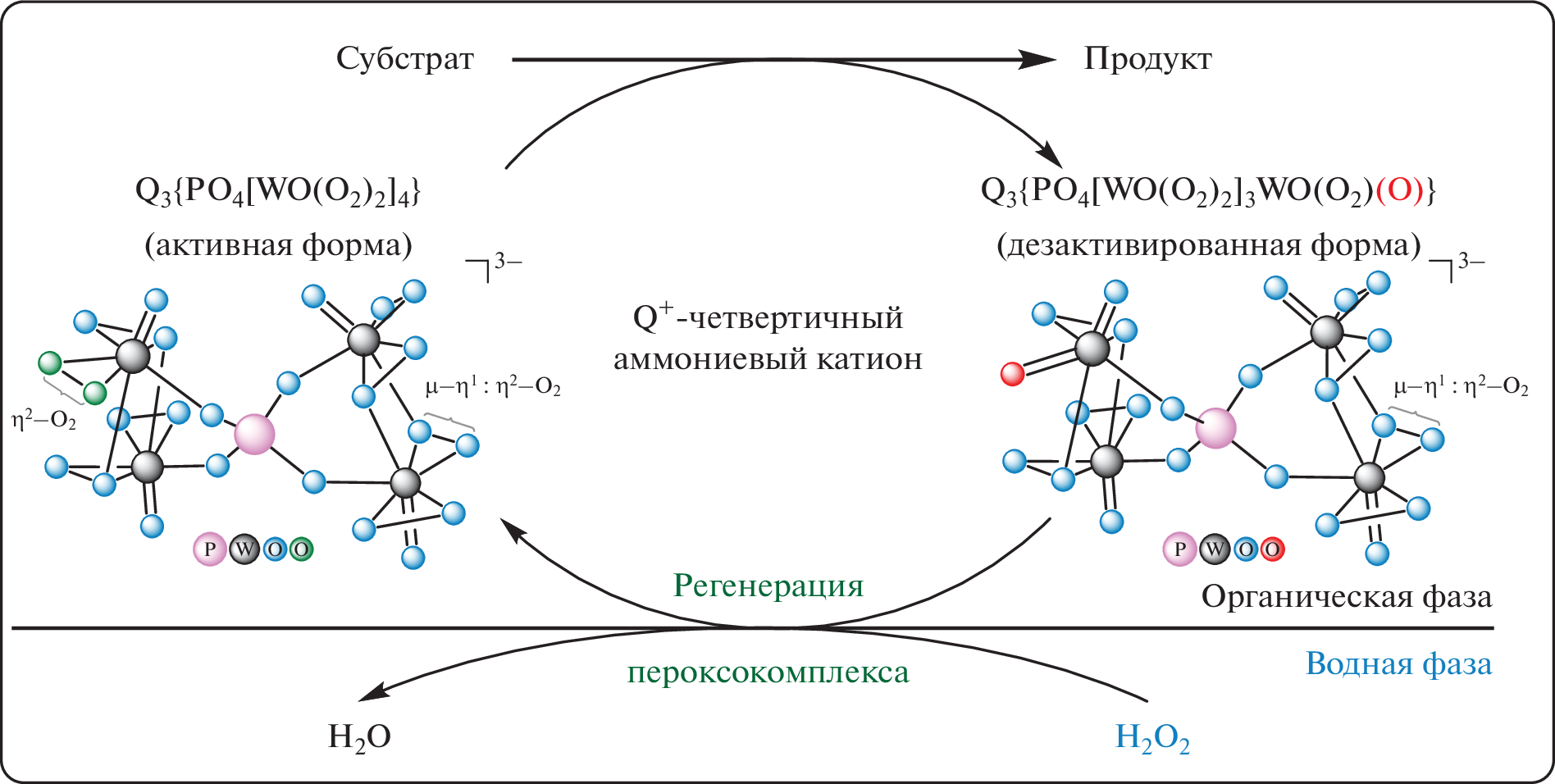 The review presents a comparative analysis of promising homogeneous metal complex catalysts and presents the results of studies on the synthesis and determination of the structural characteristics of effective catalysts for the oxidation of organic compounds with hydrogen peroxide – Q3{PO4[WO(O2)2]4} (Q is a quaternary ammonium cation) – using methods EXAFS, SAXS, NMR, Raman and IR spectroscopy. The possibilities of using bifunctional homogeneous peroxopolyoxo complexes of metals in combination with organic cations having quaternized nitrogen under the conditions of interfacial catalysis are considered, using examples of reactions of oxidation of various classes of organic compounds with hydrogen peroxide to obtain popular products – aliphatic and aromatic epoxides, mono- and dicarboxylic acids, as well as biologically active compounds for medical and agro-industrial purposes.