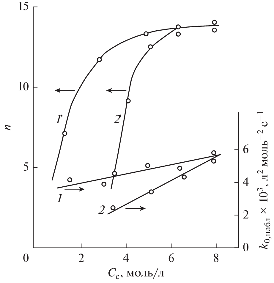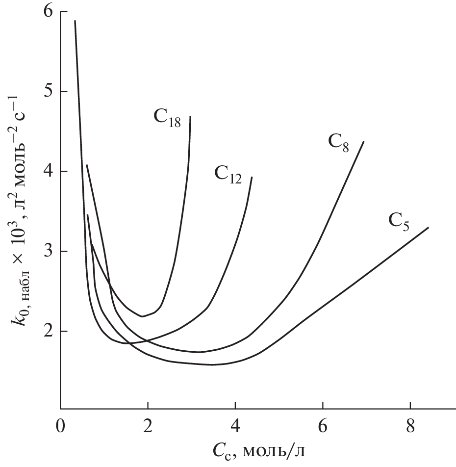 It is assumed that in the reaction of alcohol oxyethylation, the kinetically independent unit is not a monomeric alcohol molecule, but a linear chain alcohol associate, consisting, on average, of n alcohol molecules. Тhe reaction rate is of the first order not by the gross concentration of alcohol, but by the concentration of these associates. It has been suggested that first-order reactions with respect to the associated component, which are widespread in liquid-phase chemical kinetics, take place as a result of the release of the reaction product from the associate.