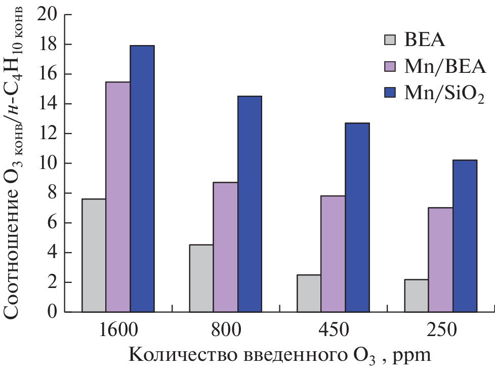 Catalytic characteristics of Mn-catalysts supported on different (SiO2 and BEA zeolite) were compared in the ozone decomposition and ozone-catalytic oxidation (OZCO) of VOCs using n-butane as the model compound. The parent SiO2 did not show any activity; therefore the characteristics of Mn/SiO2 are determined by the catalytic properties of the supported MnOx oxide. In contrast to SiO2, BEA zeolite demonstrates significant catalytic activity, though at a temperature by 50°C higher than Mn/BEA. The data obtained allow us to conclude that the catalytic characteristics of Mn/BEA at 30–100°C are determined by the Mn component of the catalyst. At higher temperature the catalytic properties of BEA can significantly affect the course of the OZCO process. The zeolite carrier improves hydrocarbon conversion at 100–200°C and decreases the amount of ozone required for the OZCO process over Mn/BEA.