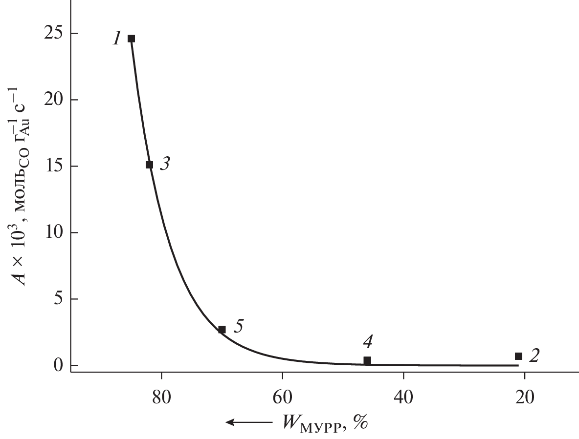 На примере анализа дисперсности золота в катализаторах Au/C рассмотрены преимущества применения метода МУРР с маскированием пор носителя фторуглеродным соединением − контрастером − для определения размеров нанесенных частиц металла перед методами ПЭМ и РФА, которые обычно используют в подобных целях. Из экспериментальных данных МУРР получены распределения частиц Au0 по размерам в широком размерном диапазоне (1–50 нм) с полным учетом всех имеющихся в исследуемых образцах размерных фракций частиц, определены величины массовой доли “рентгеноаморфных” частиц Au0 с размерами ≤4 нм (WМУРР) в этих образцах. Установлено, что окислительная обработка носителя перед нанесением комплексов-предшественников металлического золота оказывает существенное влияние на характер распределения частиц Au0 по размерам в конечном катализаторе. Сопоставление результатов измерения скорости окисления СО избытком влажного воздуха при 40°C на катализаторах Au/C с найденными для этих катализаторов величинами WМУРР показало, что каталитическая активность возрастает экспоненциально по мере увеличения WМУРР. Высокую активность в окислении СО продемонстрировали катализаторы с WМУРР ≥ 80%.
