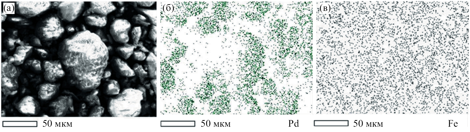 Содержание палладия и железа определяли методом атомно-абсорбционной спектроскопии (ААС) на спектрометре Thermo Fisher Scientific серии iCE 3000 (“Thermo Scientific”, США) с атомизацией в пламени состава воздух–ацетилен. Навески образцов катализаторов растворяли в смеси HNO3 : H2SO4 : НF = 2 : 1 : 1 (об.) с последующим разбавлением до концентрации палладия примерно 4 мг/л. Результаты обрабатывали с помощью программного обеспечения SOLAAR Data Station. Прибор калибровали с применением стандартных растворов Pd(NO3)2 с концентрацией Pd 1, 3, 6, 9, 12 мг/л и стандартных растворов Fe(NO3)3 ∙ 9H2O с концентрацией 5, 3.75, 2.5, 1.25, 0.1 мг/л.