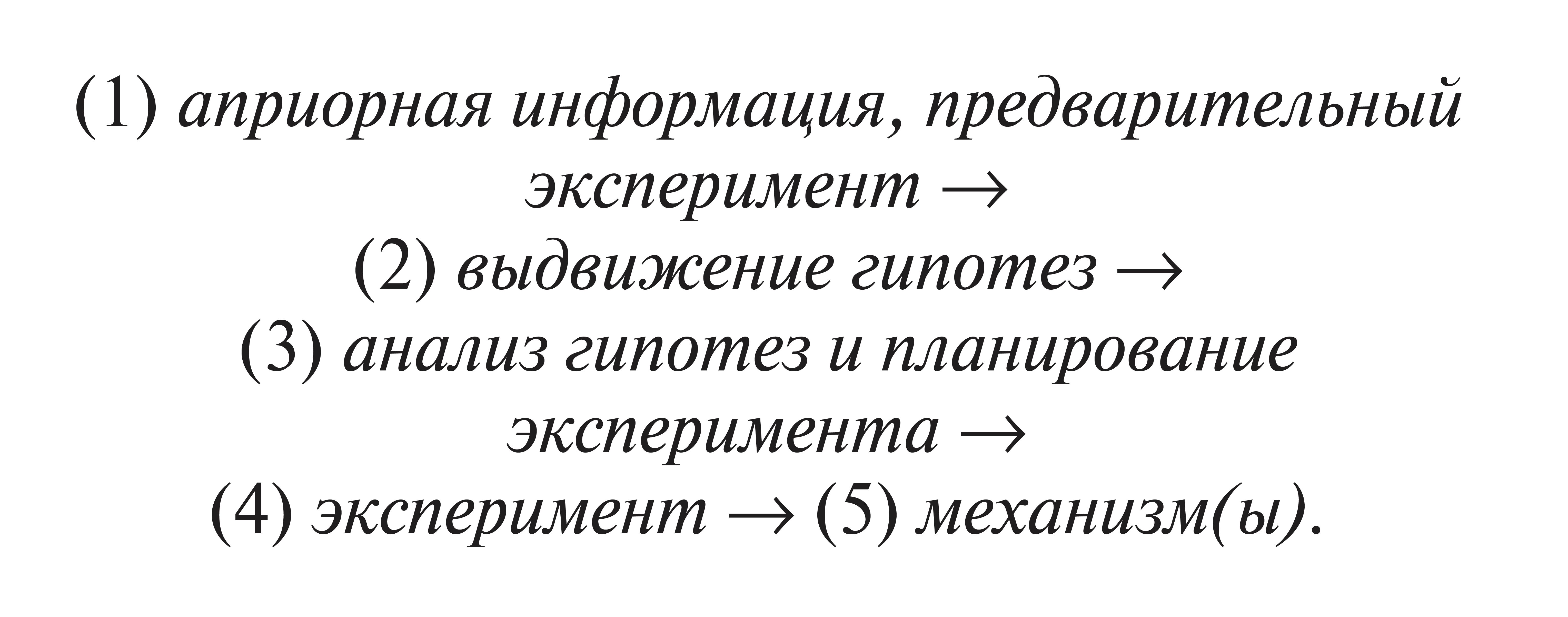 Альтернативная – “рациональная” в терминах [3] – стратегия предполагает использование гипотез о механизме с самого начала исследования и в явном виде. Т.е. реализуется схема 2: