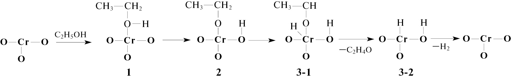 Процесс образования ацетальдегида из этанола с участием кислотно-основного центра, содержащего хром, представлен на схеме 3.