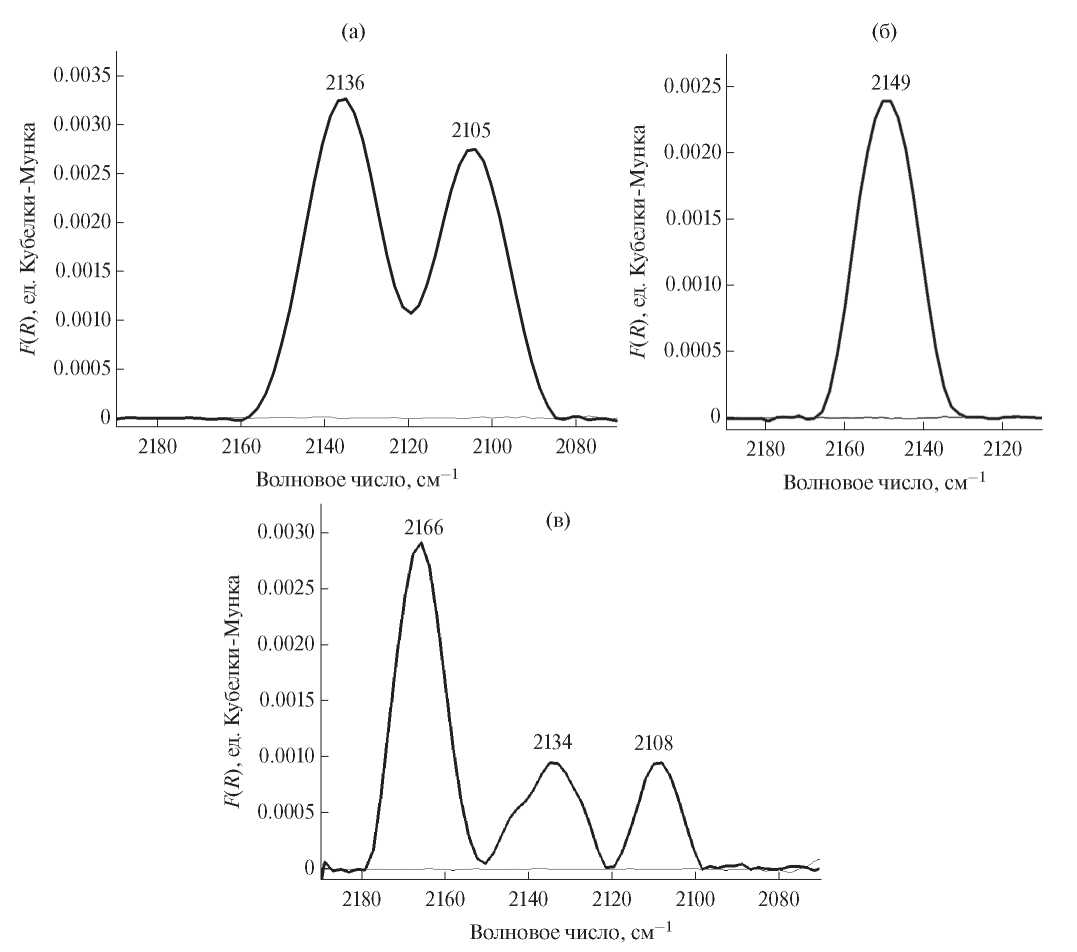 ИК-спектры диффузного отражения CO изучали на спектрометре Protégé 460 (“Nicоlet”, США) с приставкой диффузного отражения в диапазоне от 6000 до 400 см–1 с шагом 4 см–1. Перед измерением порошкообразные образцы вакуумировали в течение 3 ч при комнатной температуре. В качестве молекулы-теста использовали монооксид углерода, который адсорбировали при комнатной температуре и давлении 20 Торр.