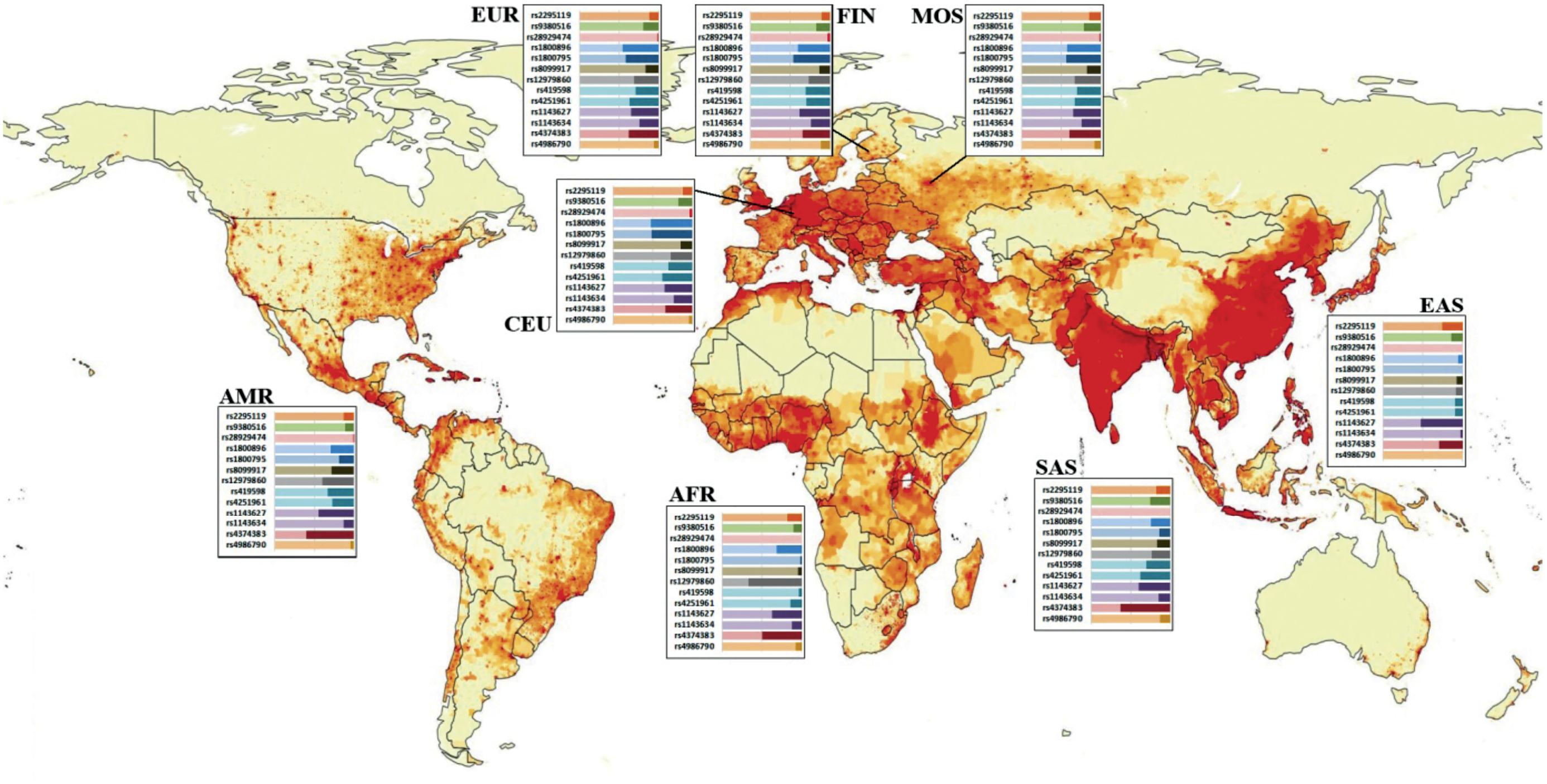 Distribution of human gene polymorphisms allele frequencies associated with viral infections