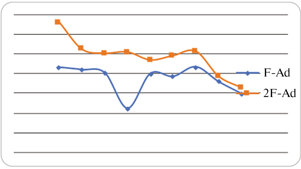 Как видно из рис. 4, с введением второго атома фтора температура плавления мочевин увеличивается по сравнению с аналогами, содержащими один атом фтора, с общей тенденцией снижения при увеличении длины метиленовых мостиков.