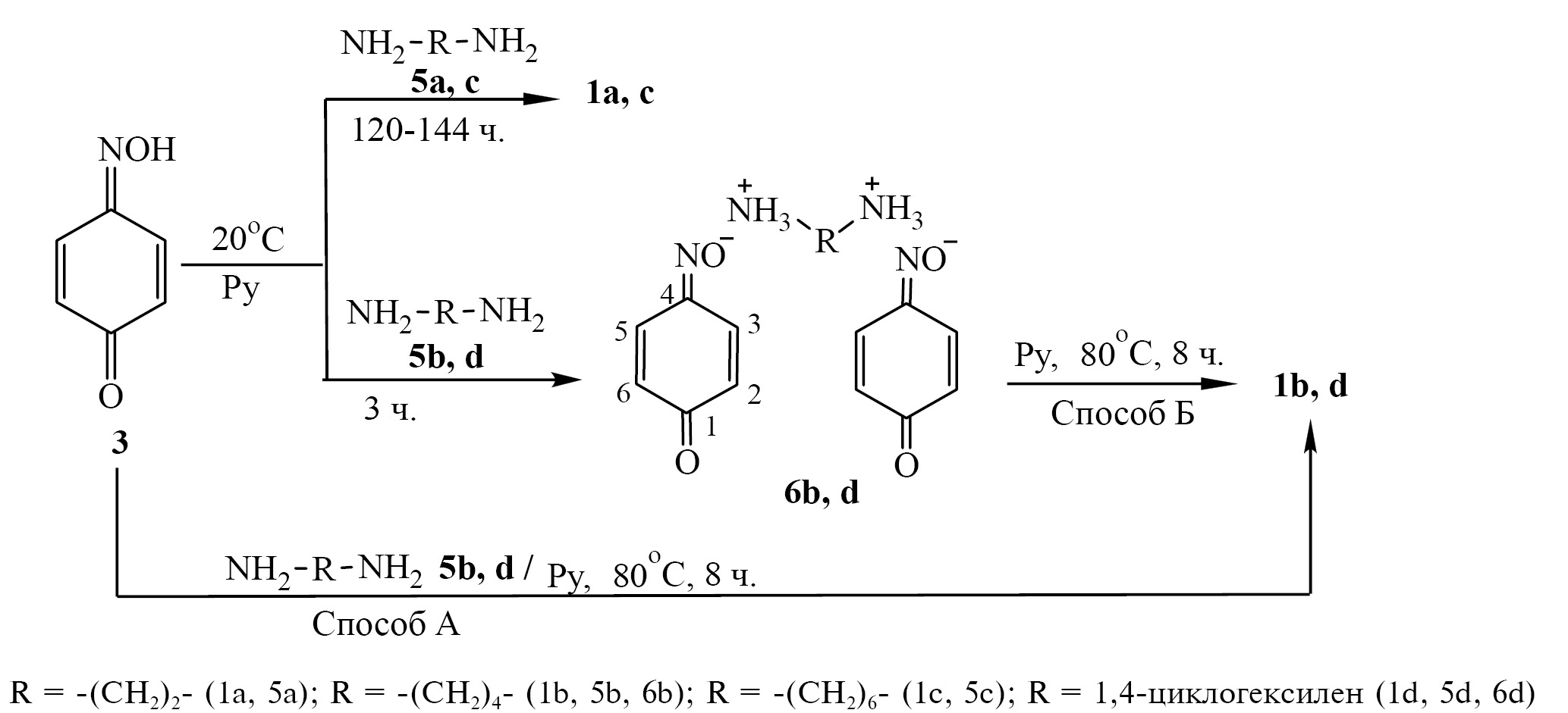 Соединения 6b, d. Общая методика. К раствору 0.5 г (4 ммоль) монооксима 1,4-бензохинона 3 в 7 мл пиридина при 20°C прибавляли по каплям при перемешивании 2 ммоль соответствующего диамина 5b (0.16 г), 5d (0.23 г). Затем смесь перемешивали при 20°C в течение 3 ч. Образовавшийся осадок отфильтровывали, промывали 5 мл пиридина, затем 20 мл диэтилового эфира.